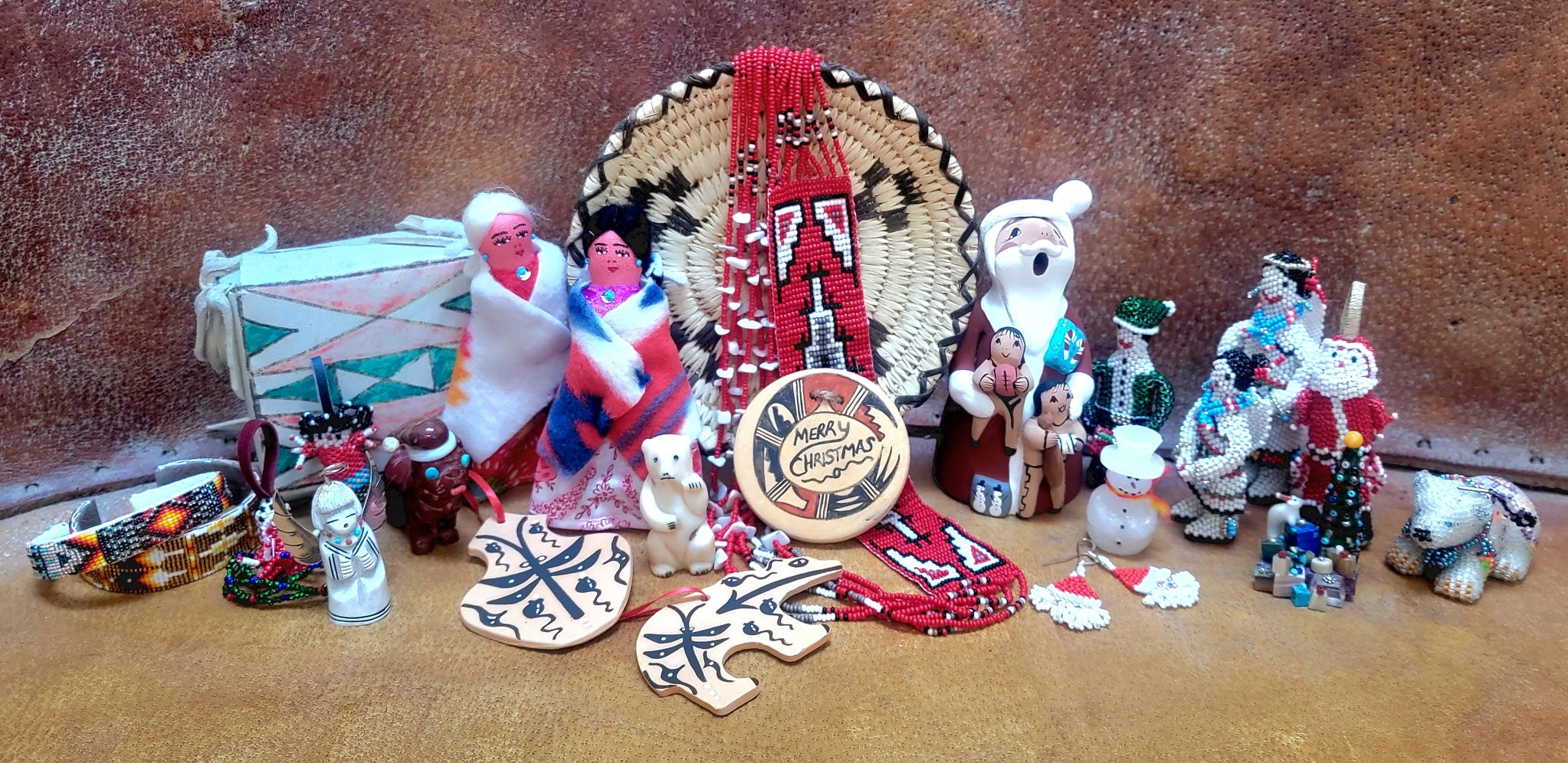 Celebrate the season with handcrafted Native American art that captures the warmth and wonder of the Holidays. From festive storytellers and ornaments to unique Zuni fetishes, each piece is created by Indigenous artisans carrying forward generations of tradition.
