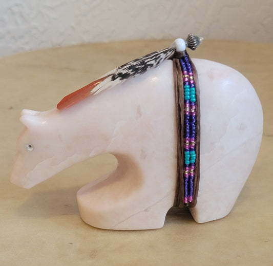 Large Zuni Stone/Travertine Bear with Colorful Pack and Paws Zuni Fetish