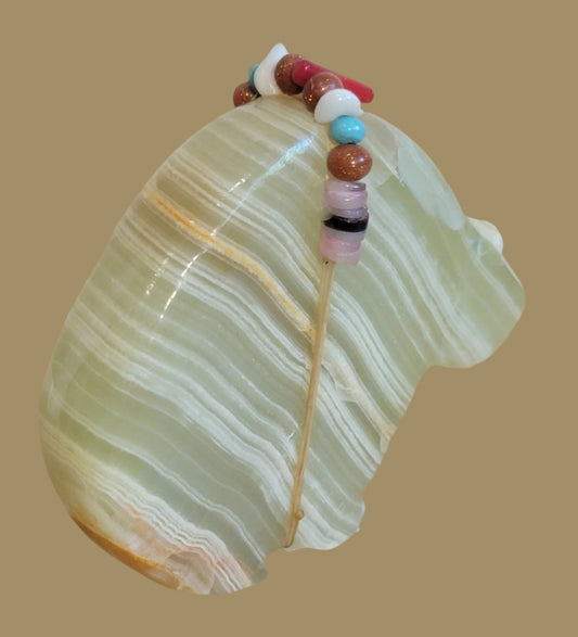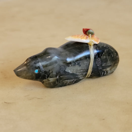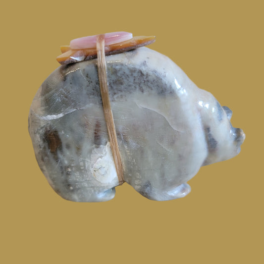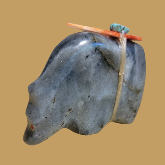 Labradorite Grizzly Bear w/Colorful Offering Zuni Fetish