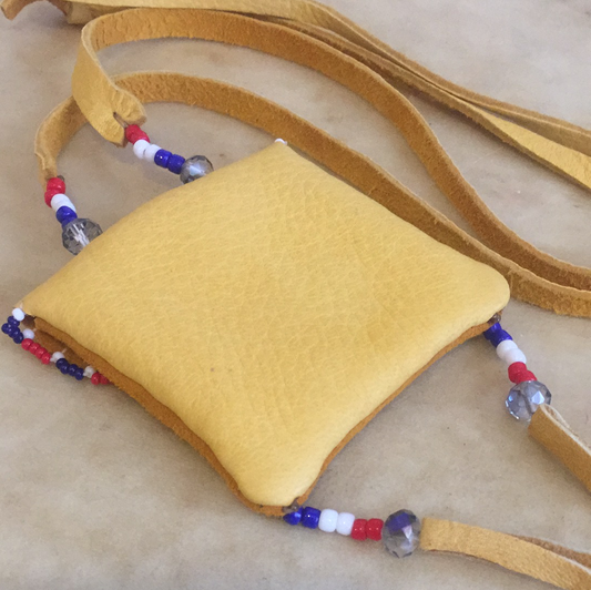 Leslie Bitsie Jr. Navajo Patriotic Indian Beadwork Beaded Pouch / Necklace