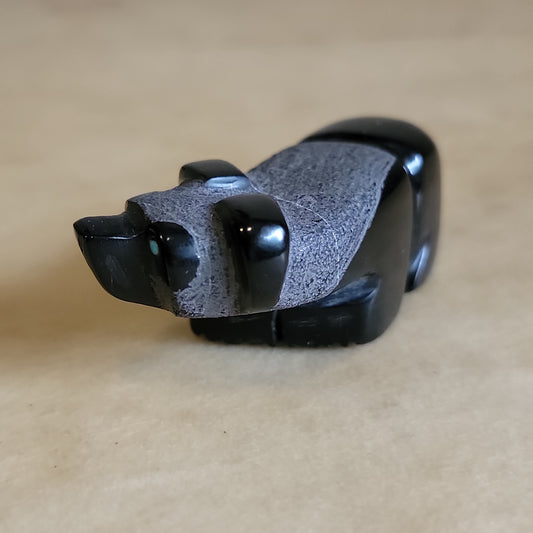 Black Marble Gazing Bear Zuni Fetish