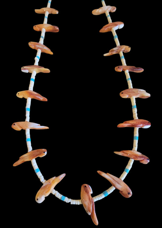 Beautiful Spiny Oyster Shell w/ Heishe Parrot Fetish Necklace Indian Jewelry