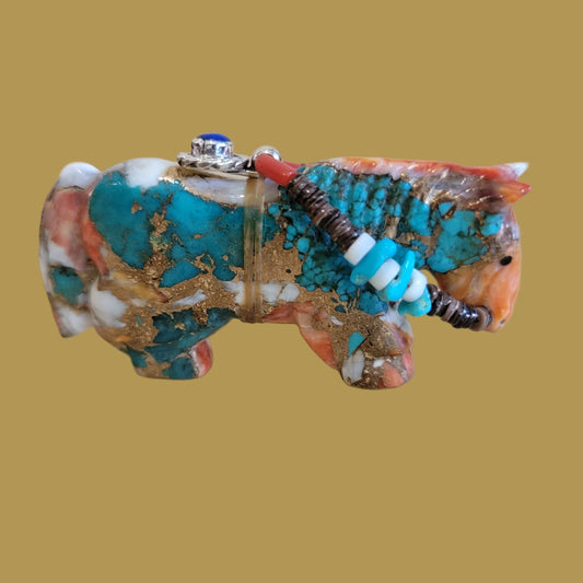 Classic Picasso Marble Bison/Buffalo Zuni Fetish