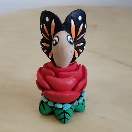 Cottonwood Root Handpainted Butterfly w/Rose Zuni Fetish/Folk Art