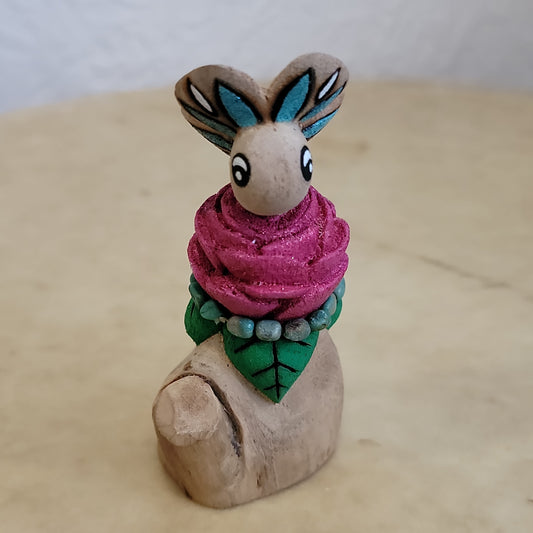 Cottonwood Root Handpainted Butterfly on Rose Zuni Fetish/Folk Art