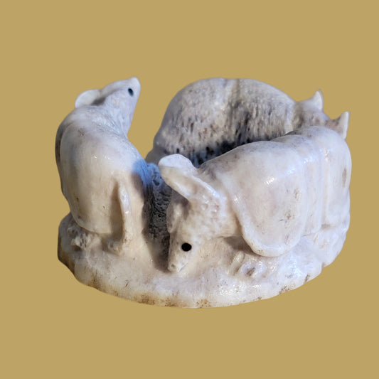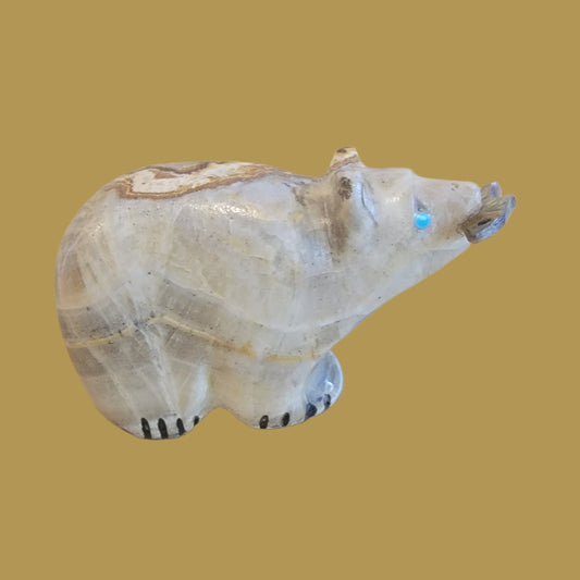 Fossil Stone Onyx Bear w/Fish and Zuni Sun Pattern Zuni Fetish