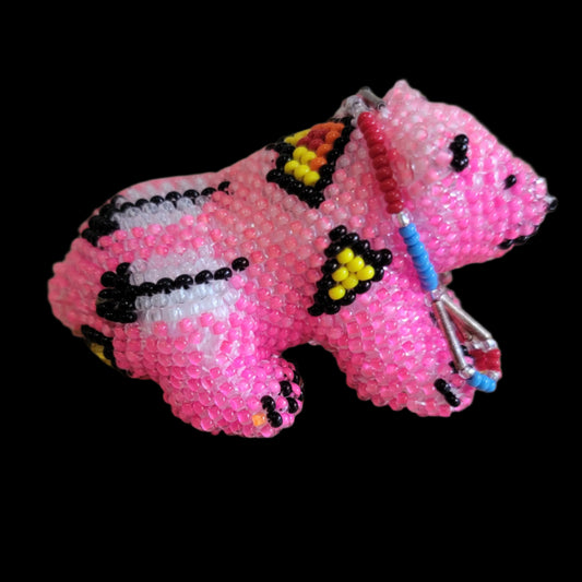 Fully Beaded Bear Cub w/Hanging Beaded Feather Indian Beadwork