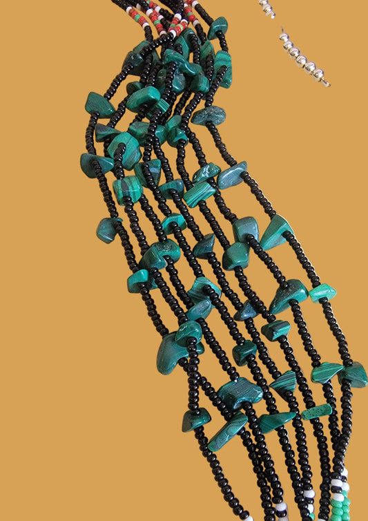 Fabulous Beaded Navajo Necklace w/ Malachite Stones Indian Jewelry/Beadwork