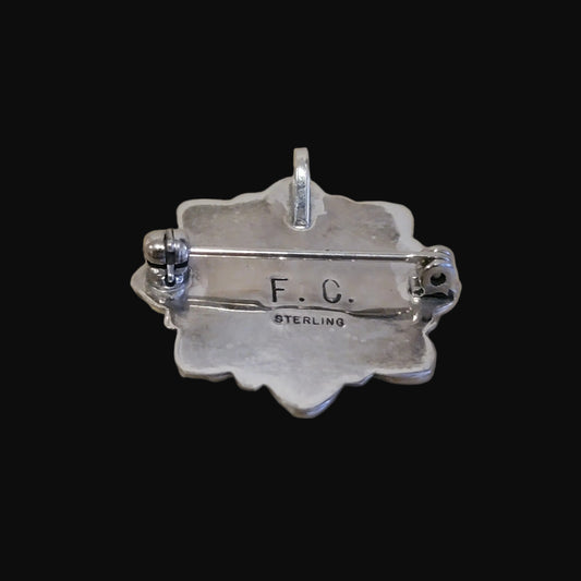 Turquoise and Mother of Pearl Sterling Silver Zuni Snowflake Pin/Pendant Indian Jewelry