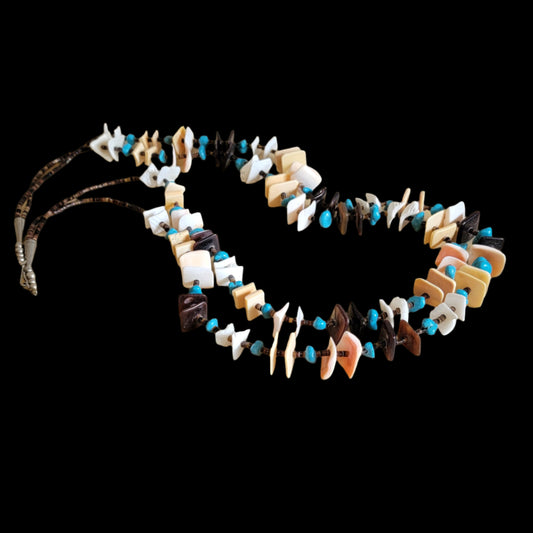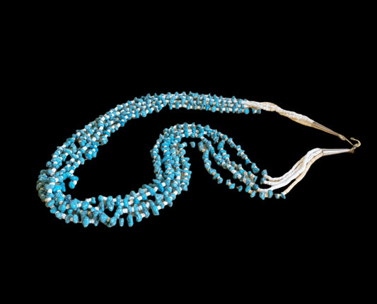 Quadruple Strand Old Pawn Shell and Turquoise Nuggets Necklace Indian Jewelry