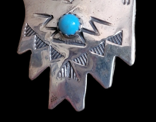 Powerful Sterling Silver Eagle w/Turquoise Navajo Pendant Indian Jewelry