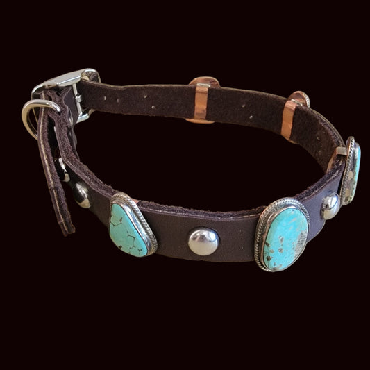 Beautiful Turquoise w/Sterling Leather Dog Collar For the "Dog Who Has Everything!" Indian Jewelry