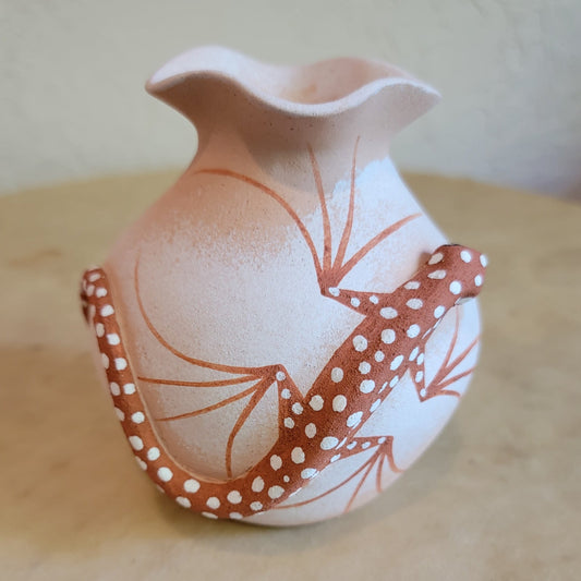 Tony Lorenzo Zuni Pueblo Pottery Vase w/ Fluted Rim/ Gecko/ Traditional Patterns