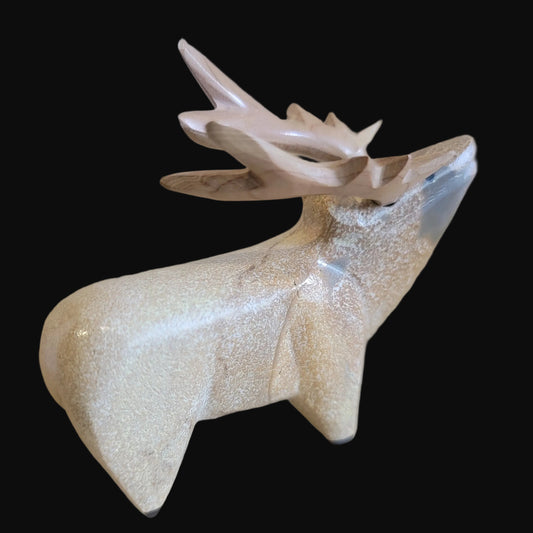 Travertine Elk w/Wooden Antlers Zuni Fetish