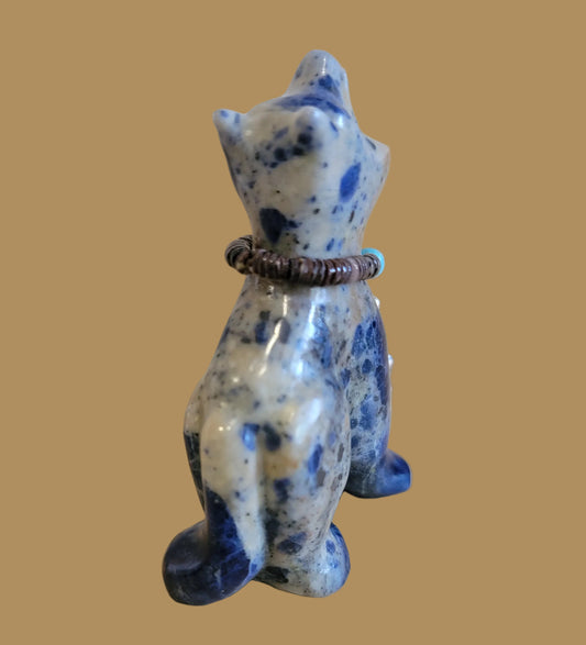 Sodalite Howling Coyote w/Sterling Bear Necklace Zuni Fetish
