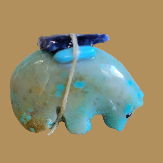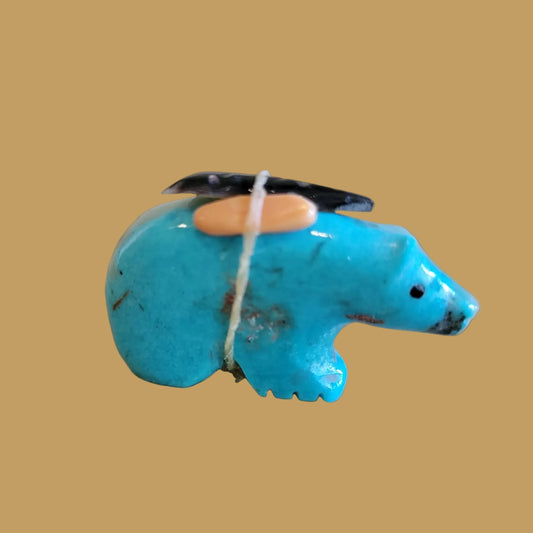 Turquoise Medicine Bear w/ Pretty Pack Zuni Fetish