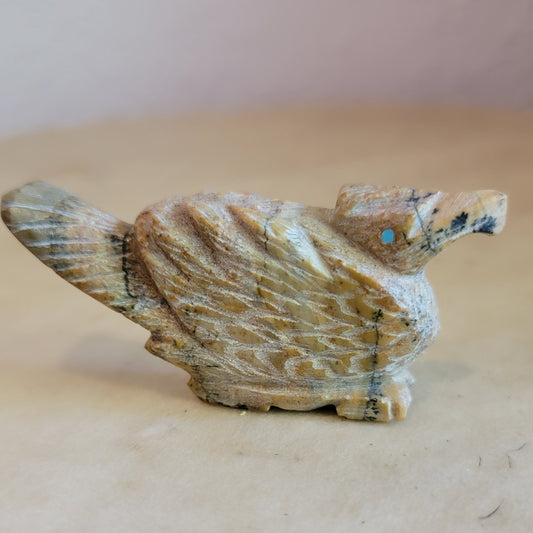 Travertine Messenger Bird Hitchhiker w/Bear Zuni Fetish
