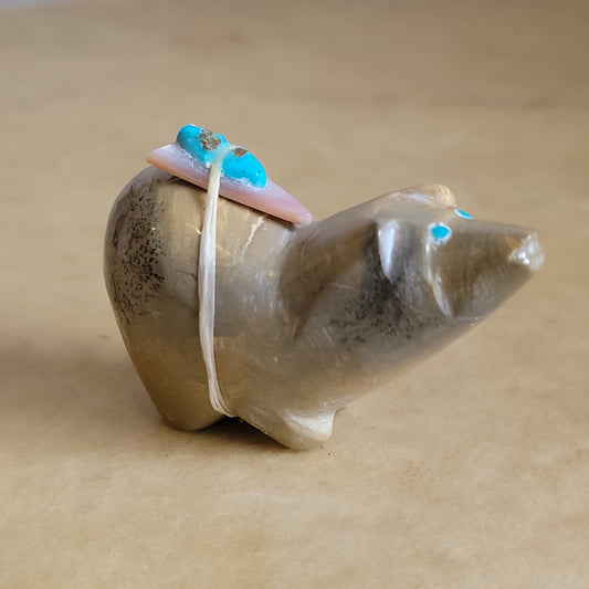 Alabaster Zuni Bear W/Bowl Fetish Bear