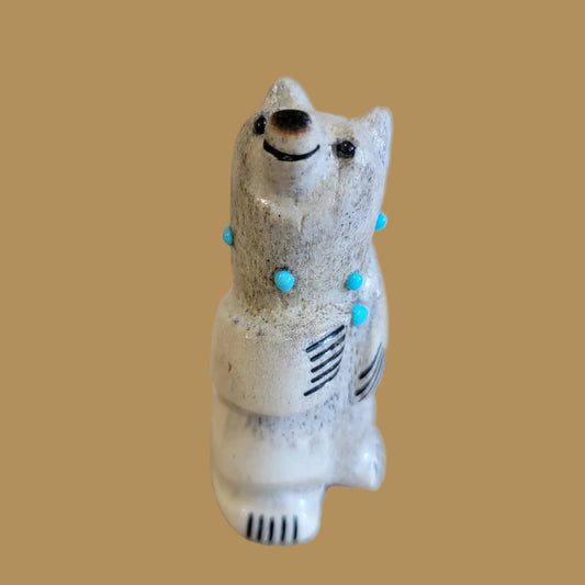 Mother of Pearl Bear w/ Fancy Bundle Zuni Fetish