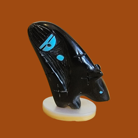 Onyx Turtle w/ Etched Shell Back Zuni Fetish