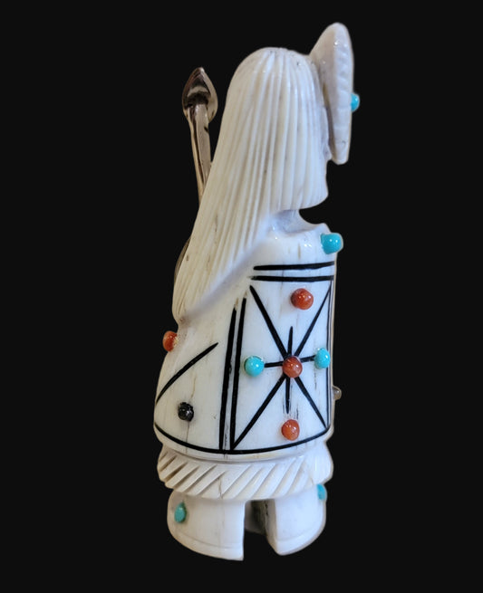 Antler Warrior Maiden w/ Sterling Silver Shield and Spear Zuni Fetish