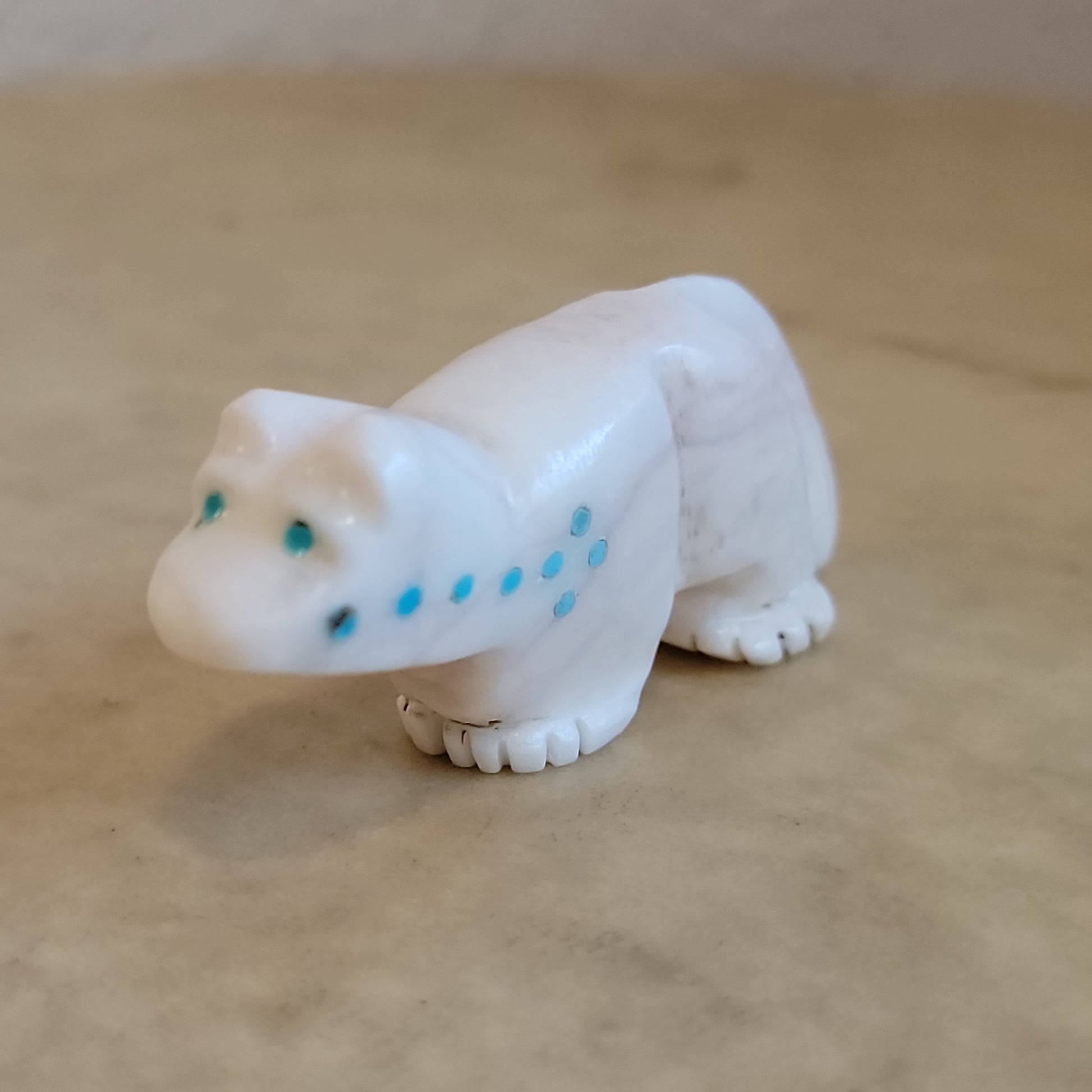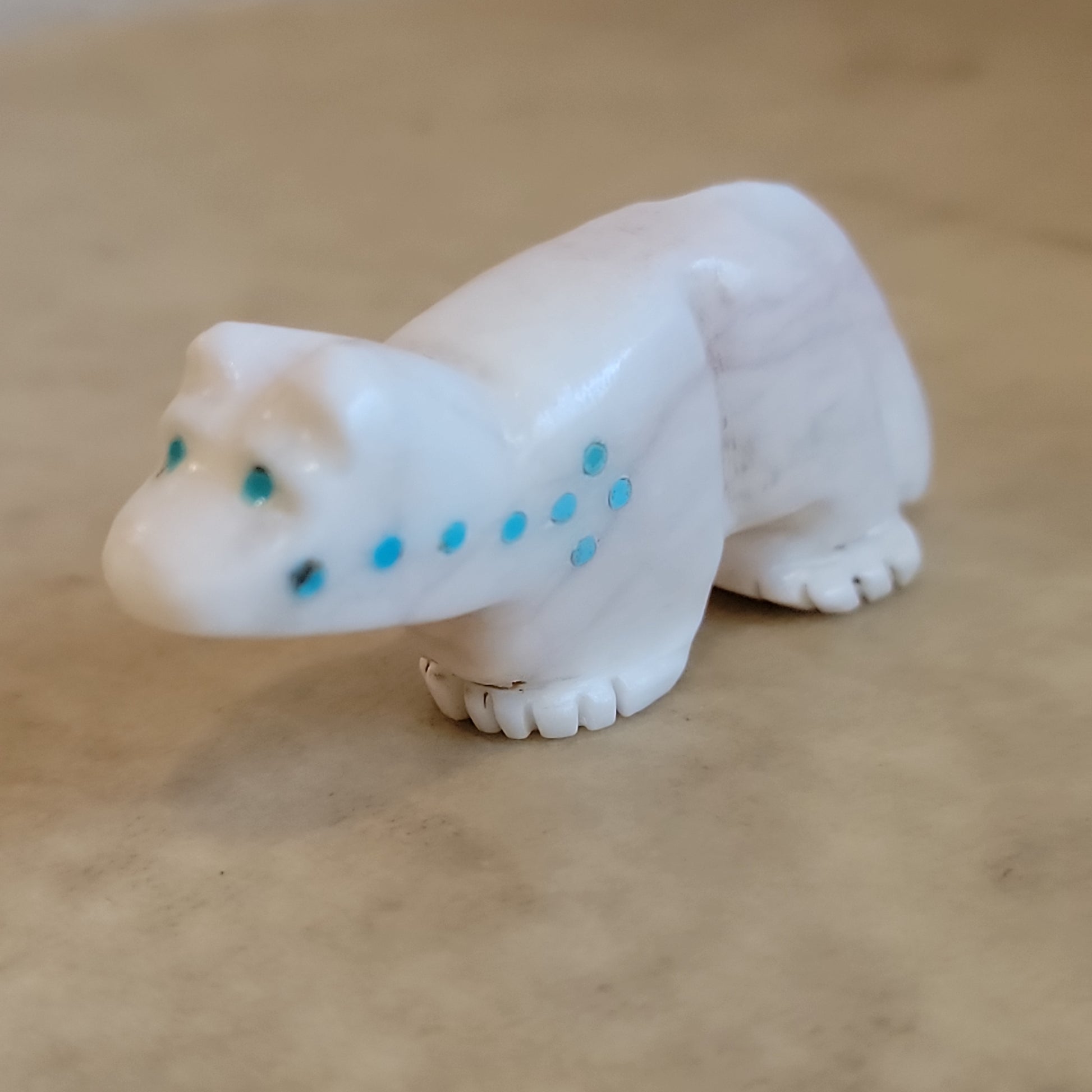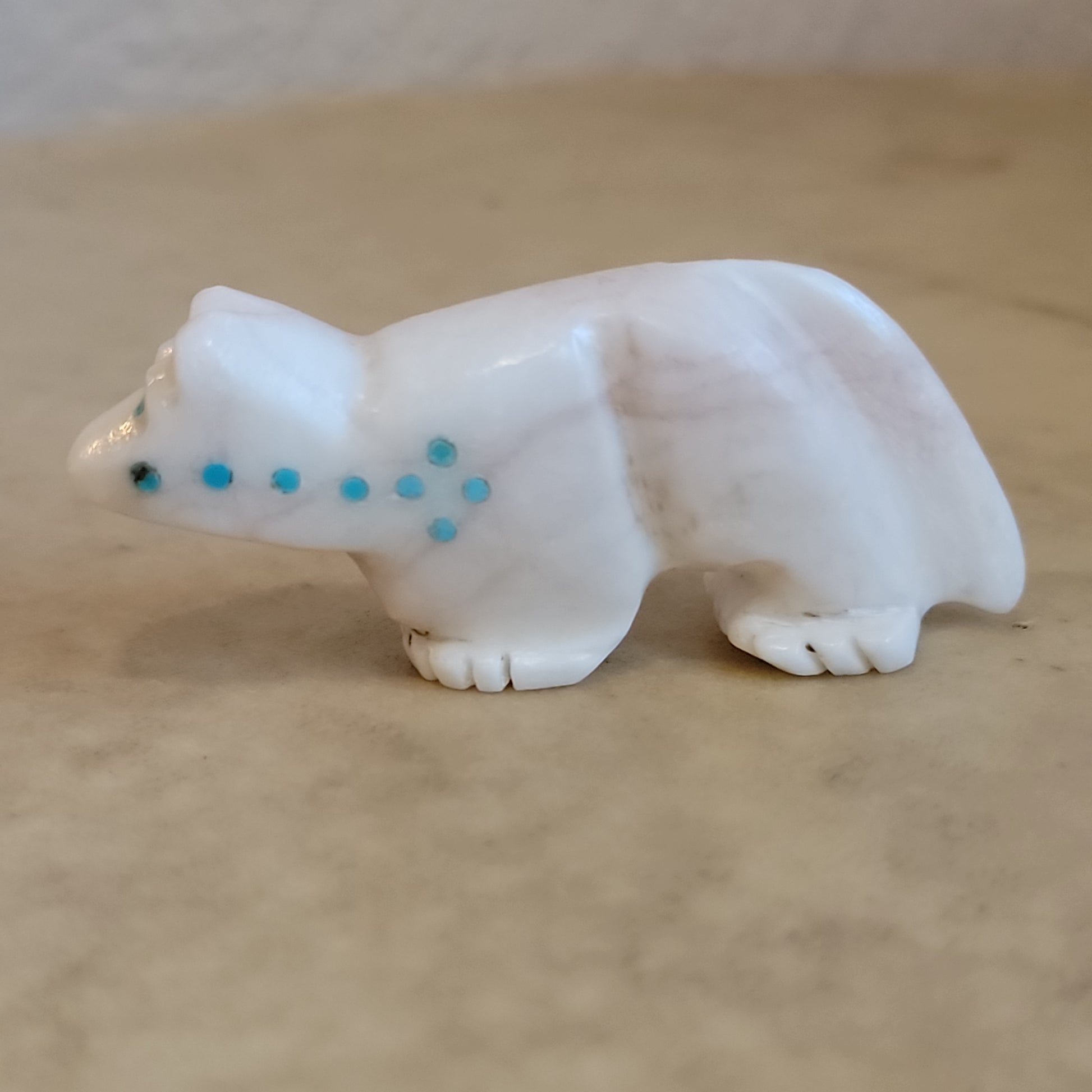 Medium: Alabaster with inlaid turquoise eyes and heartline