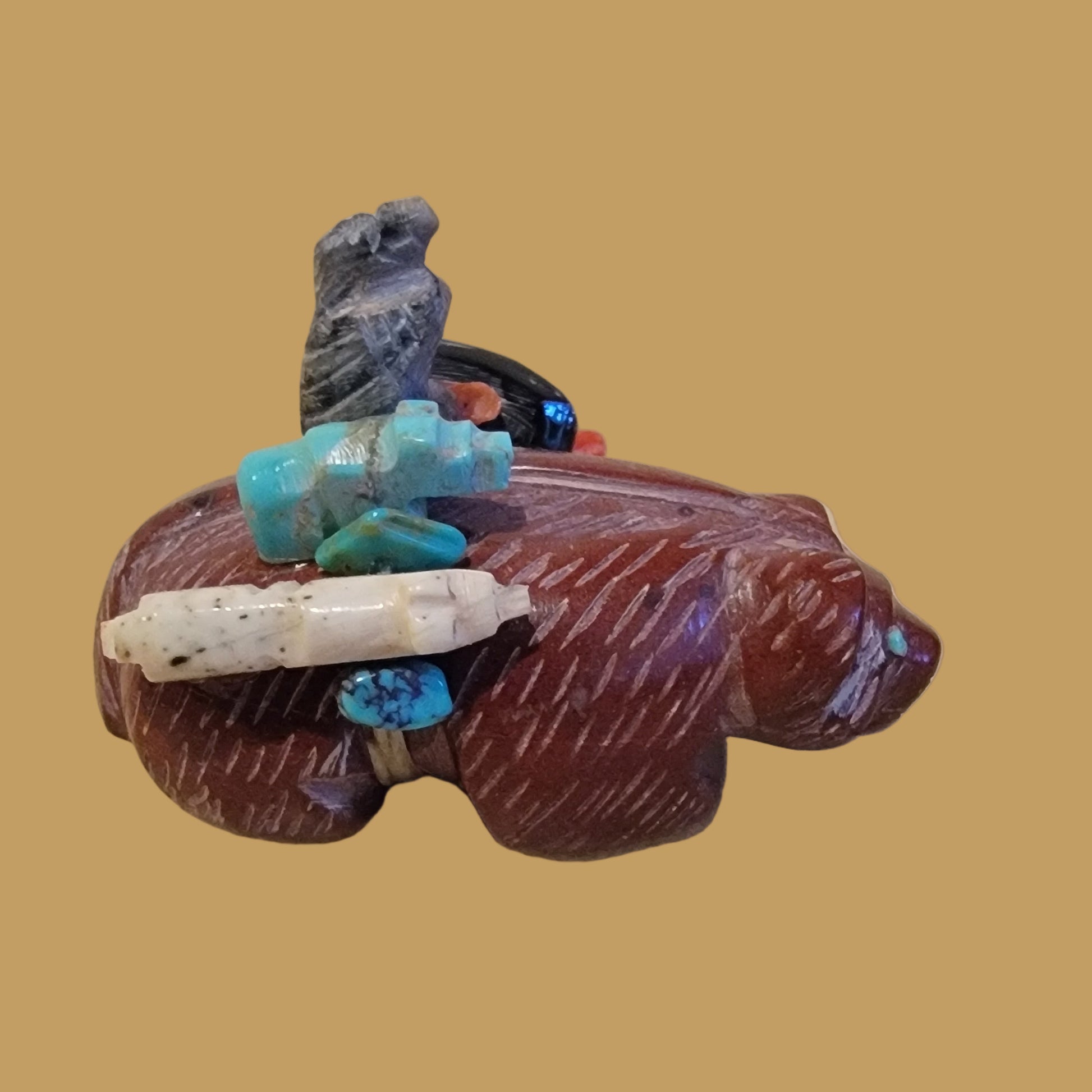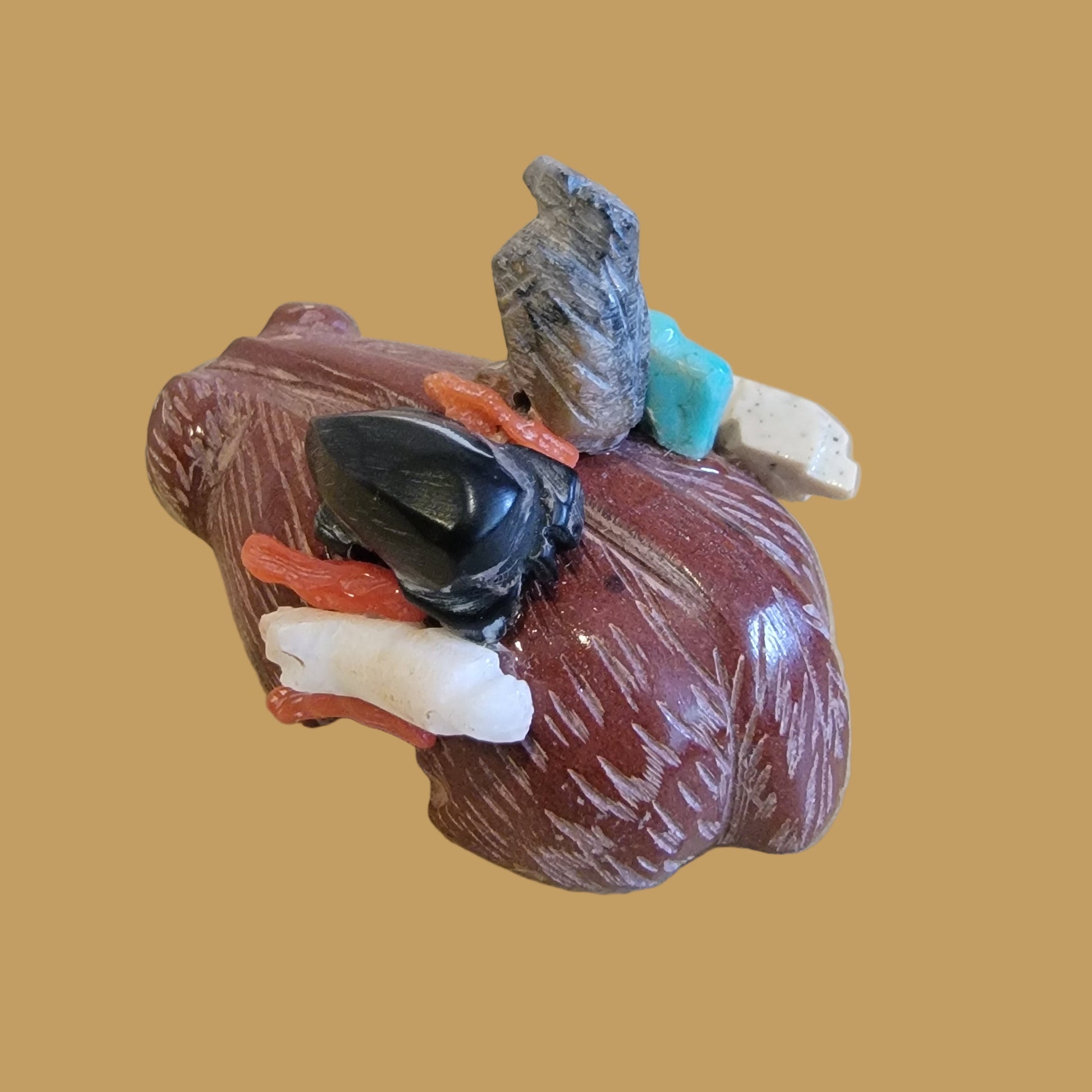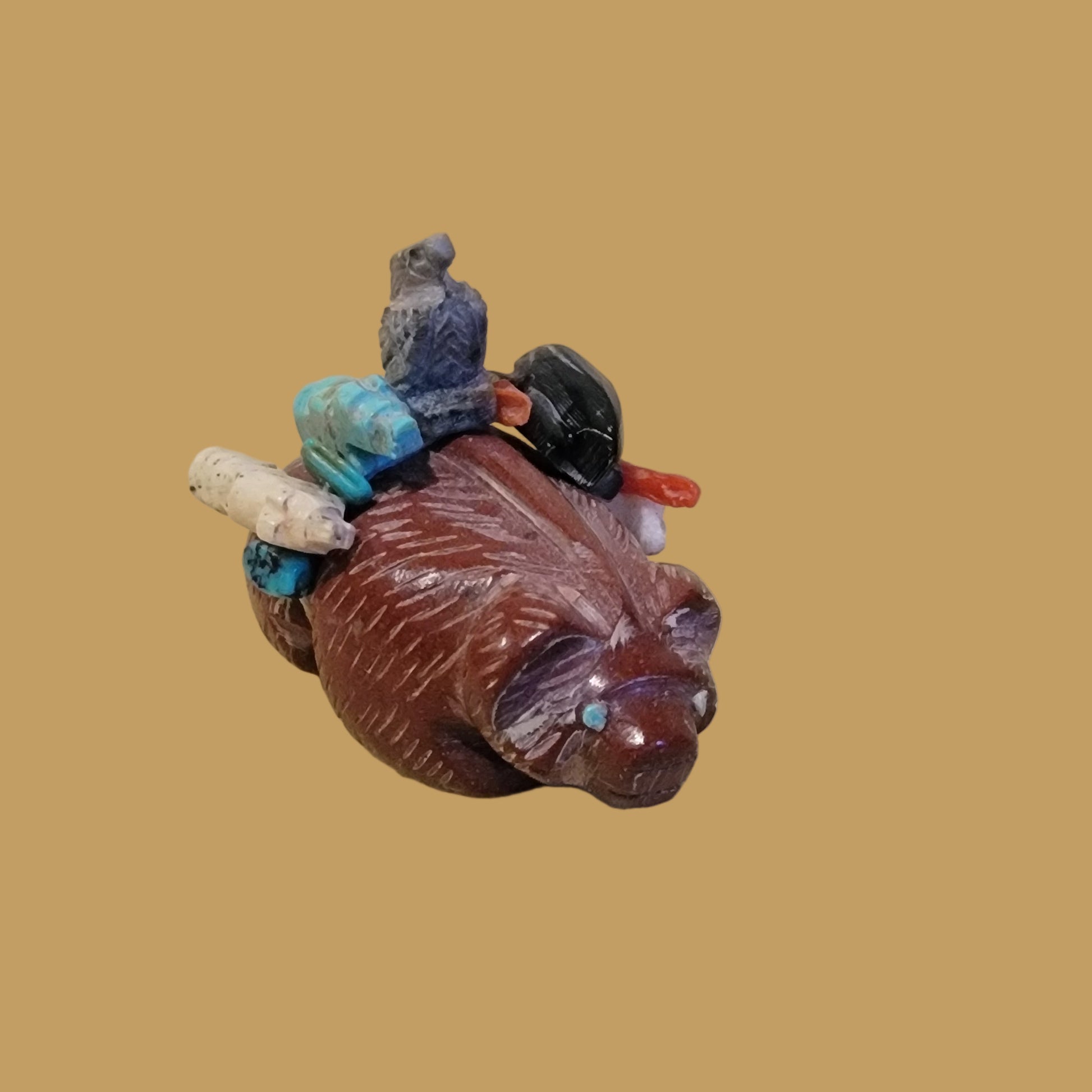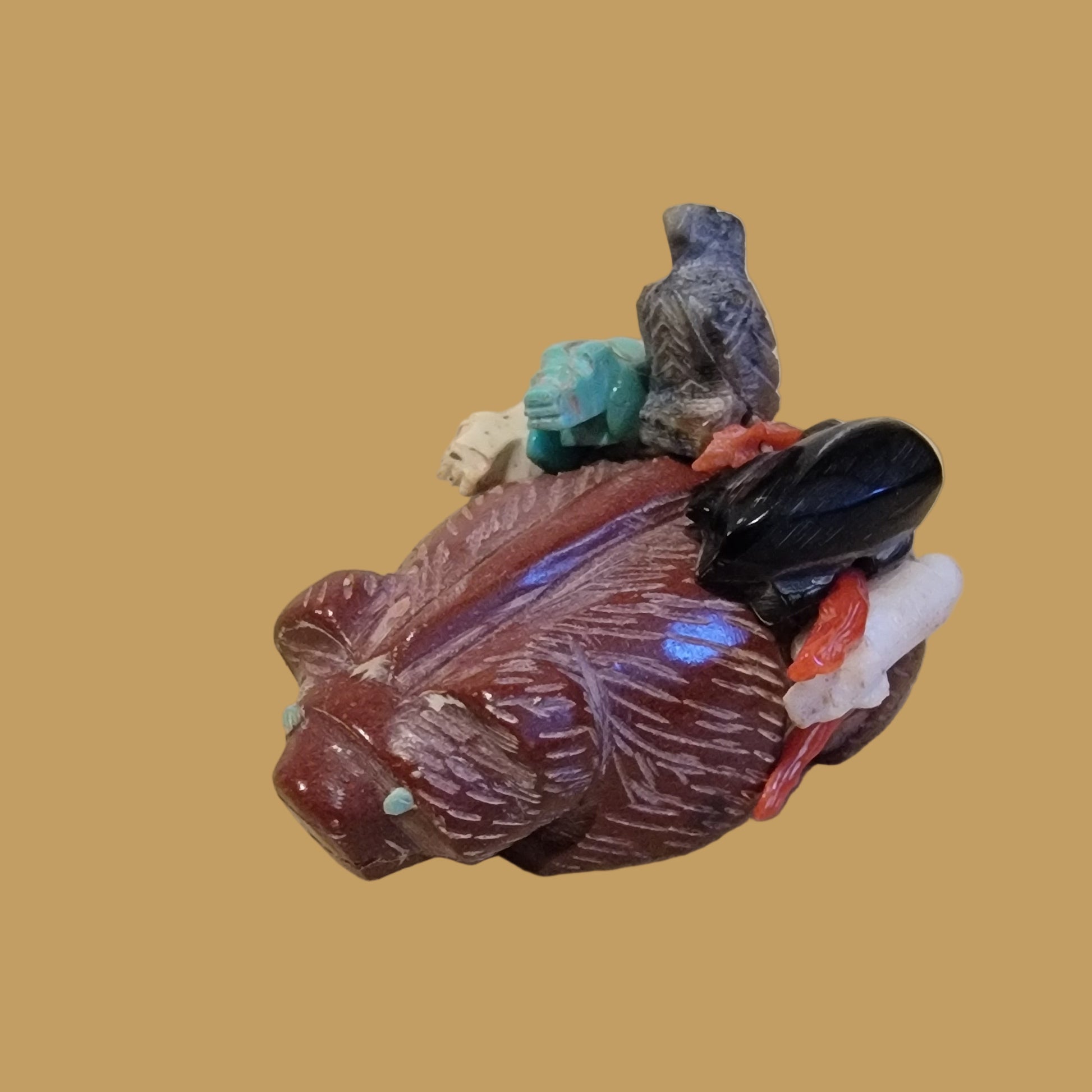 Medium: Large Pipestone Badger (south) White Marble Wolf (east) Serpentine Mountain Lion (north) Black Marble Mole (Underground) Picasso Marble Eagle (Skies) Turquoise Bear (west) Branch coral with turquoise pack