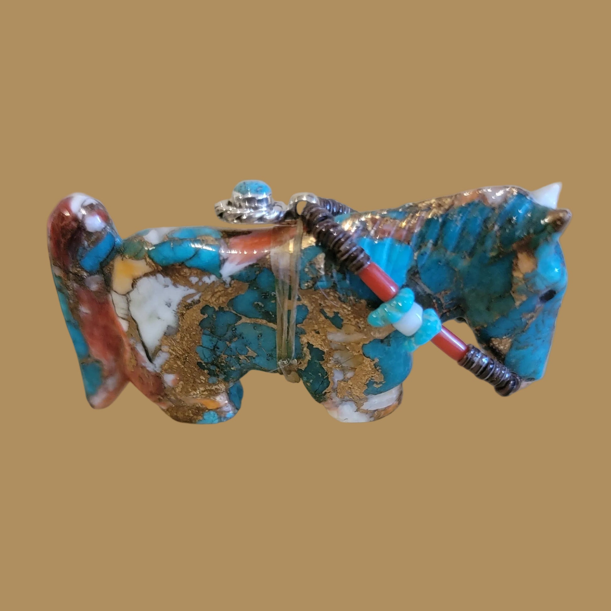 Beautiful Composite Horse w/ Fancy Bridle and Sterling Jewelry Zuni Fetish