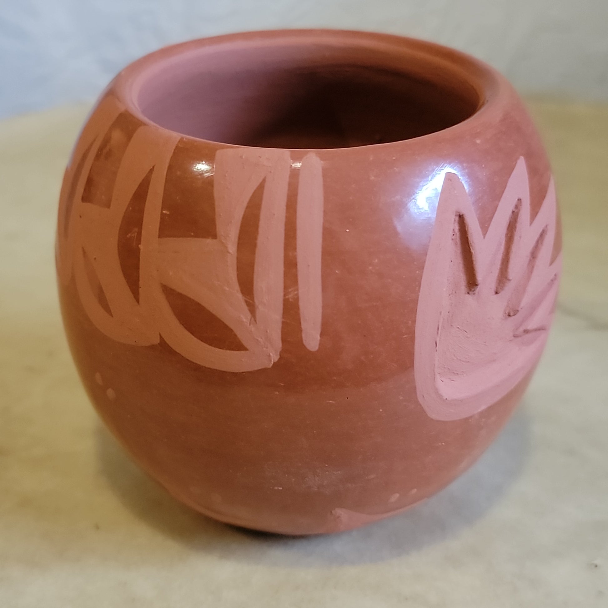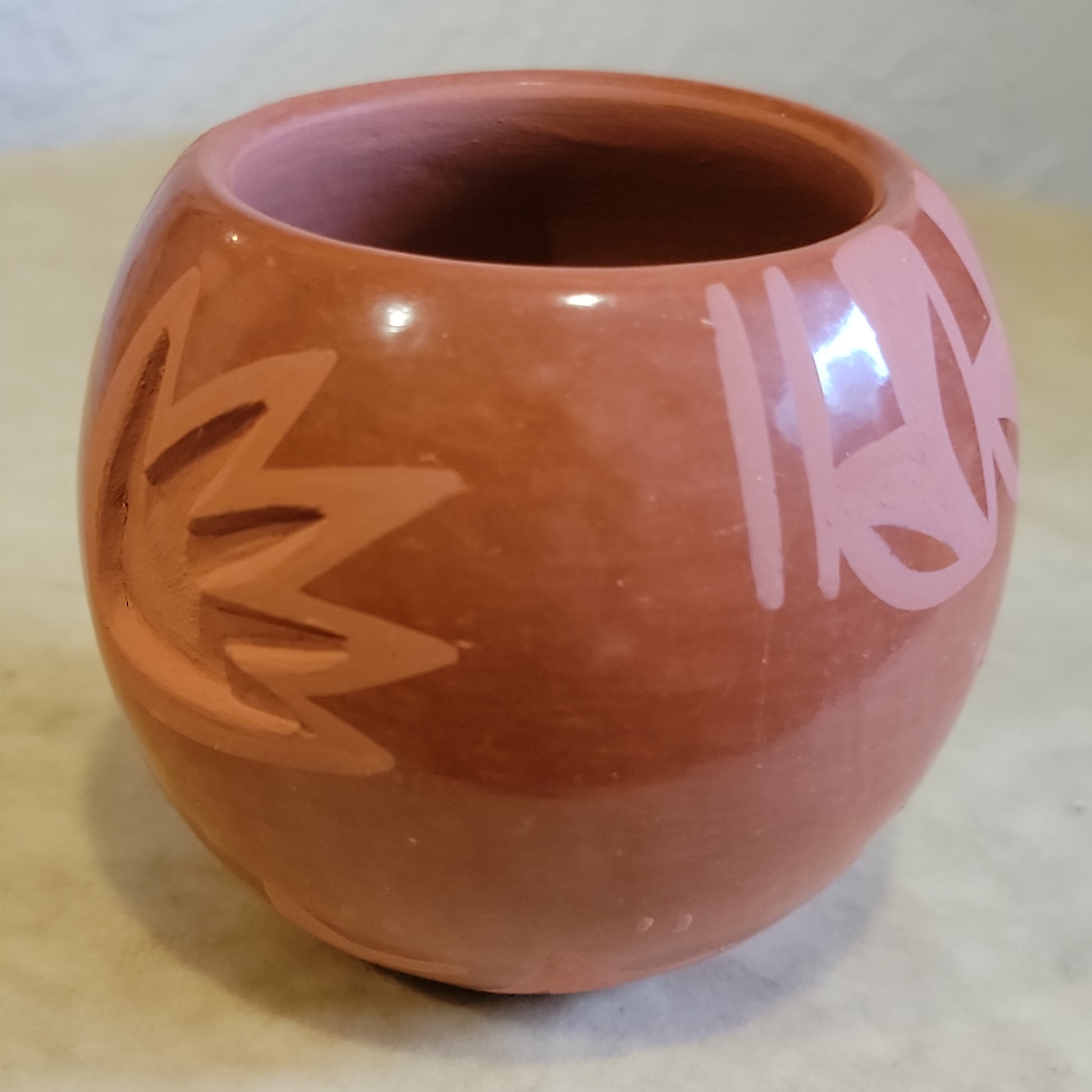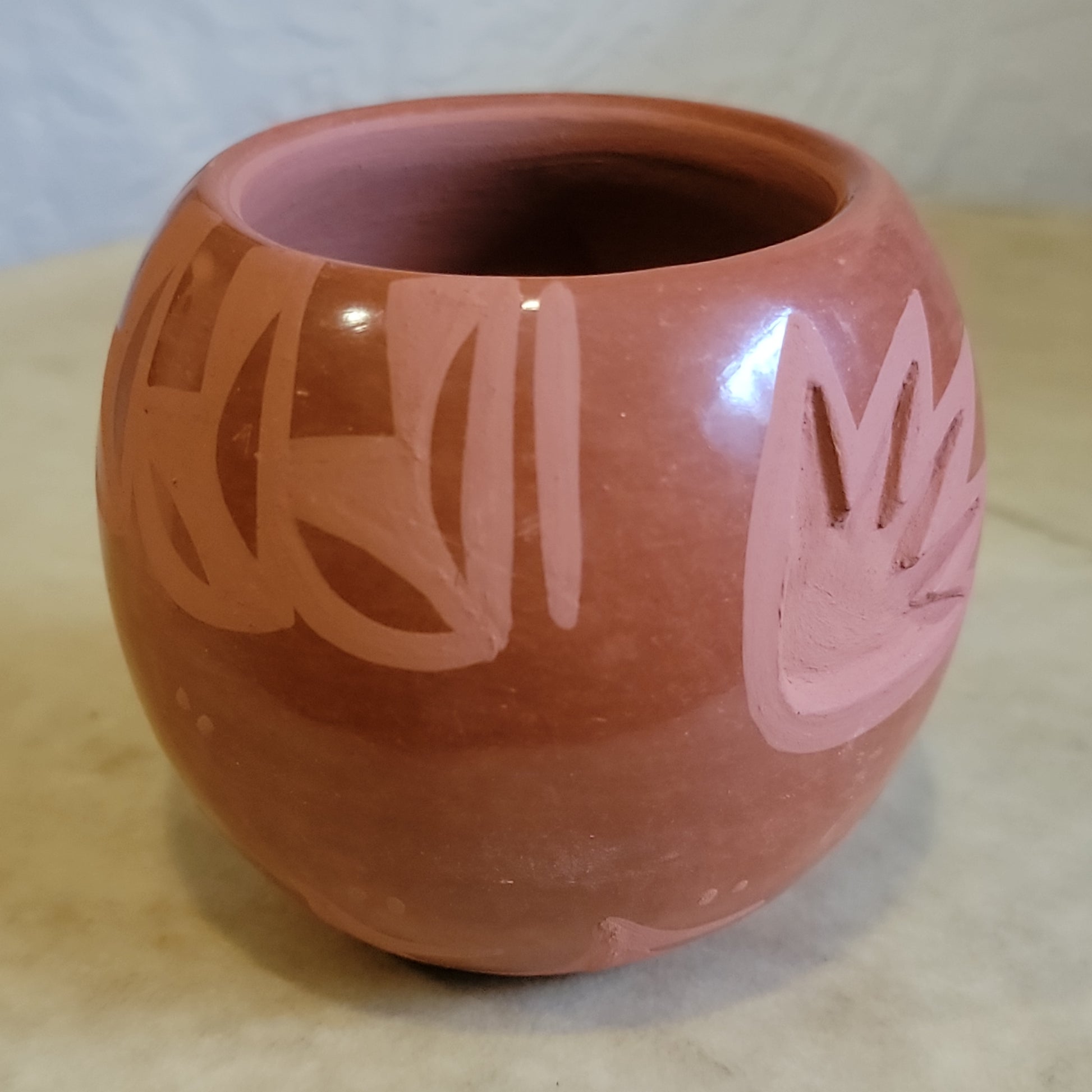 Birdell Vine Flower Bourdon Santa Clara Carved Redware Pueblo Pottery