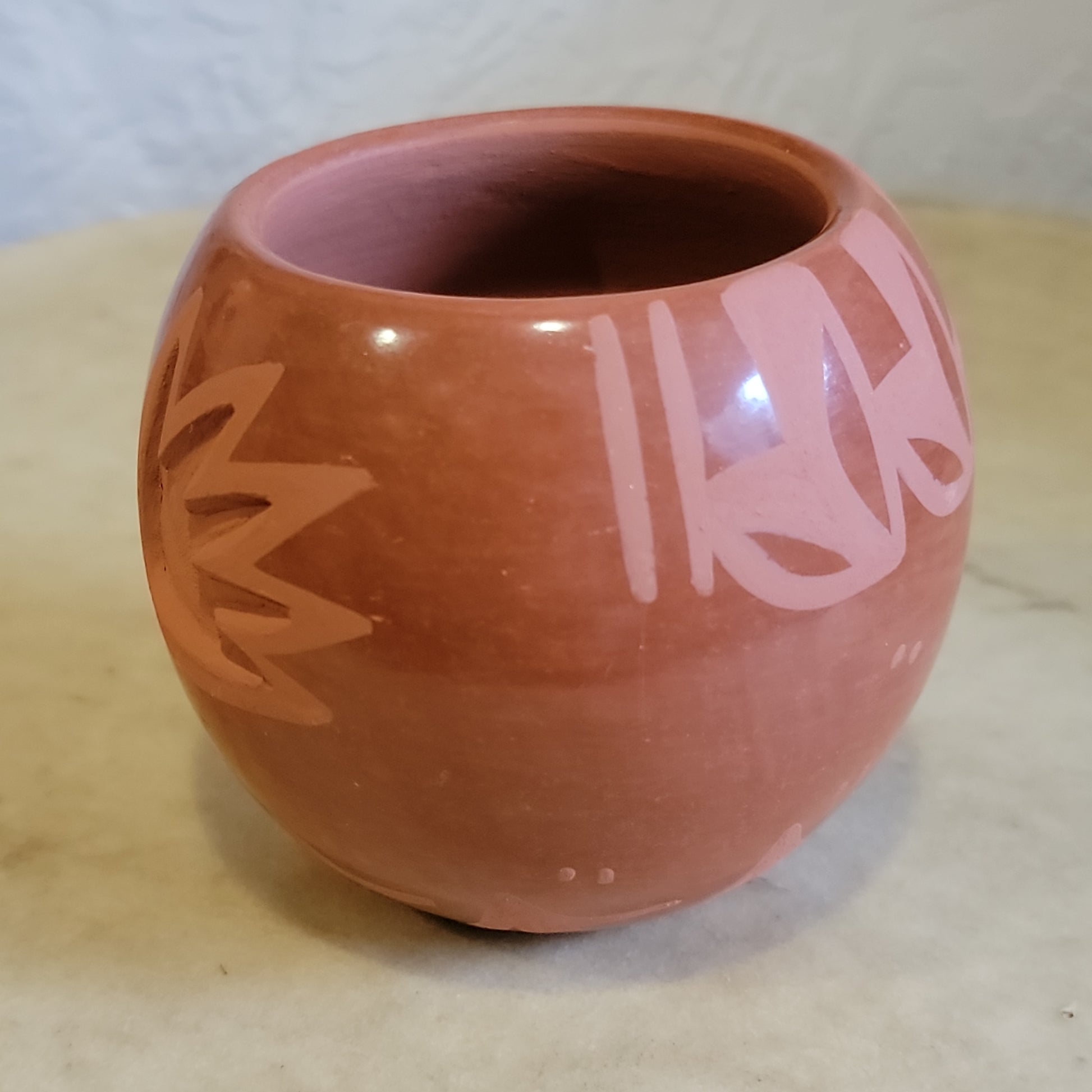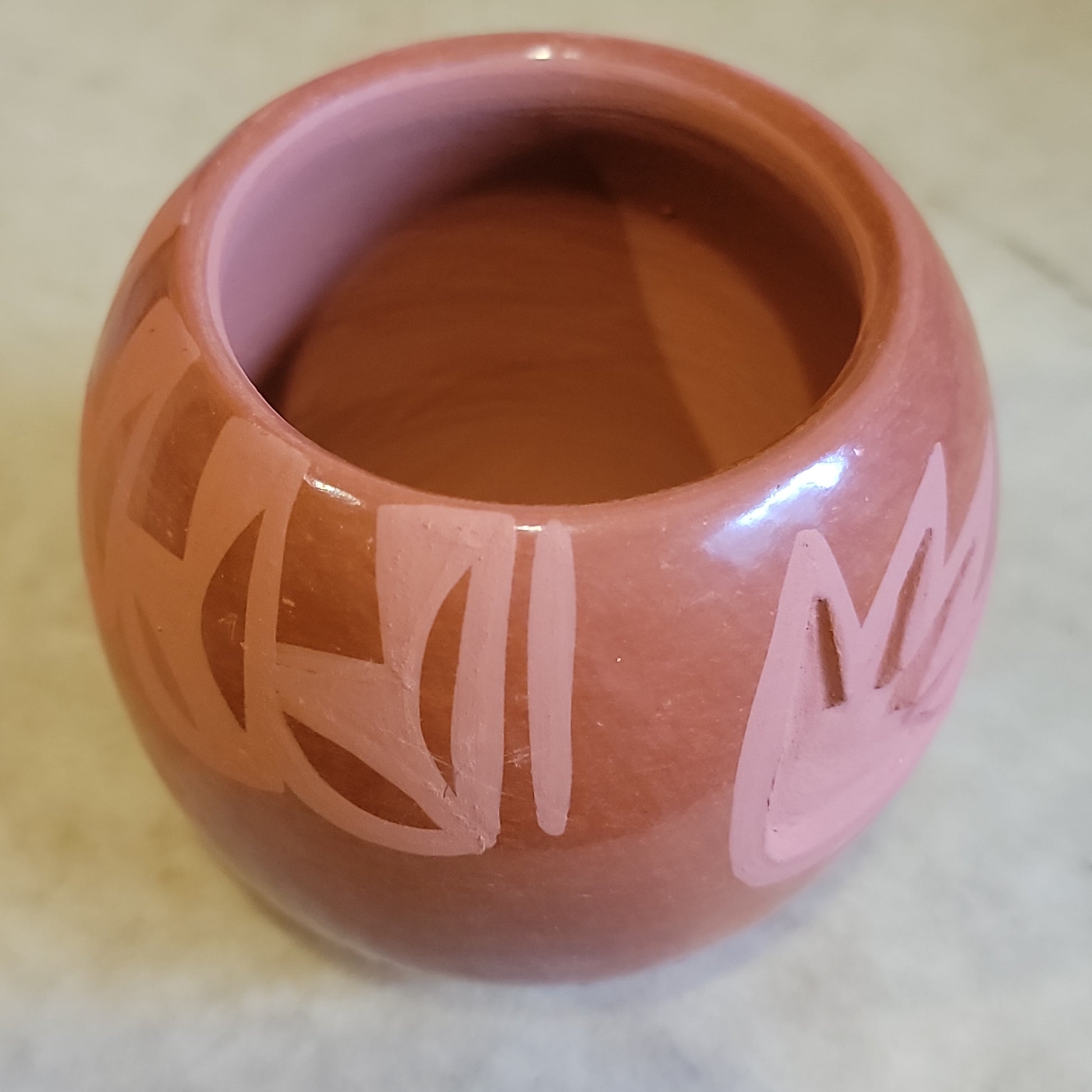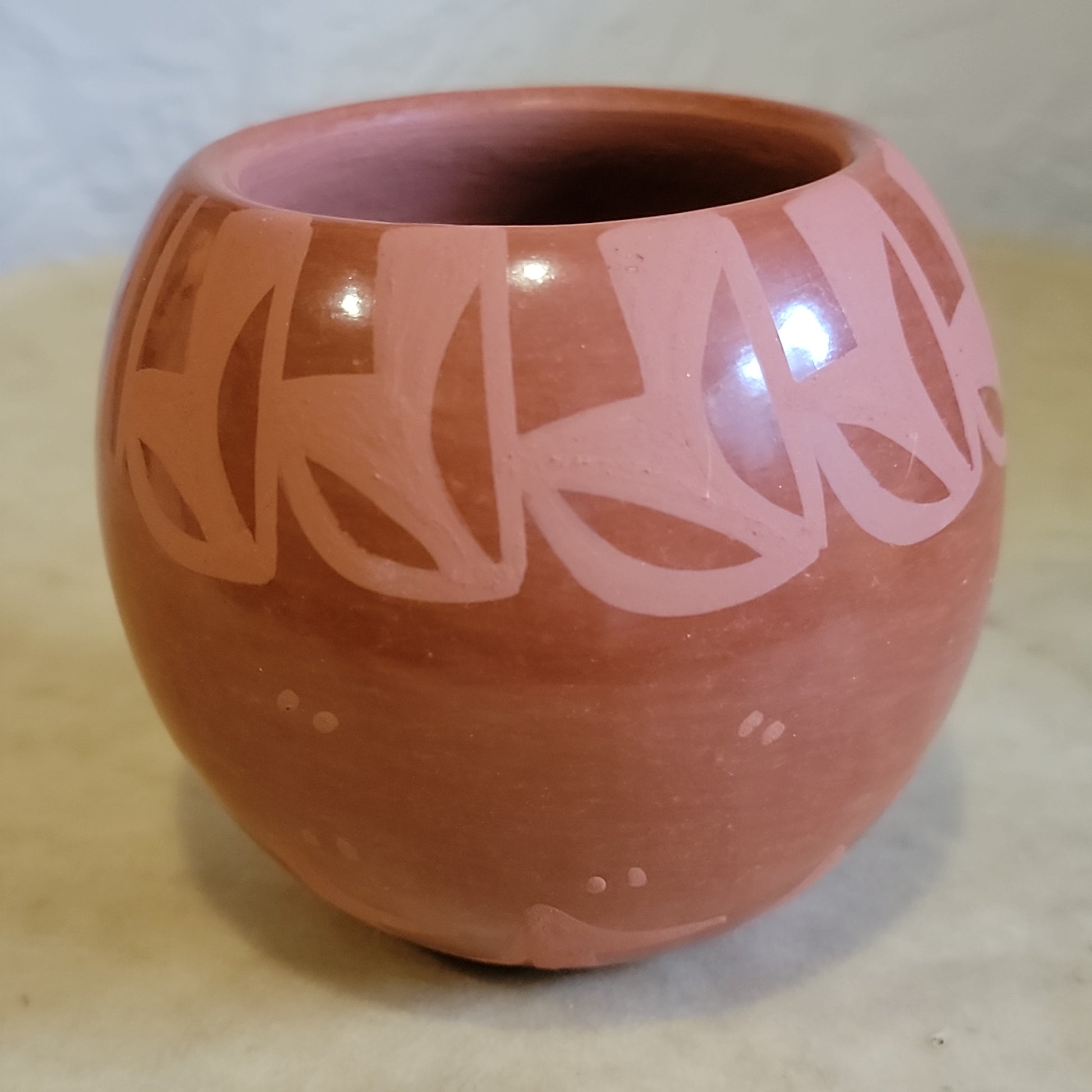Birdell Vine Flower Bourdon Santa Clara Carved Redware Pueblo Pottery