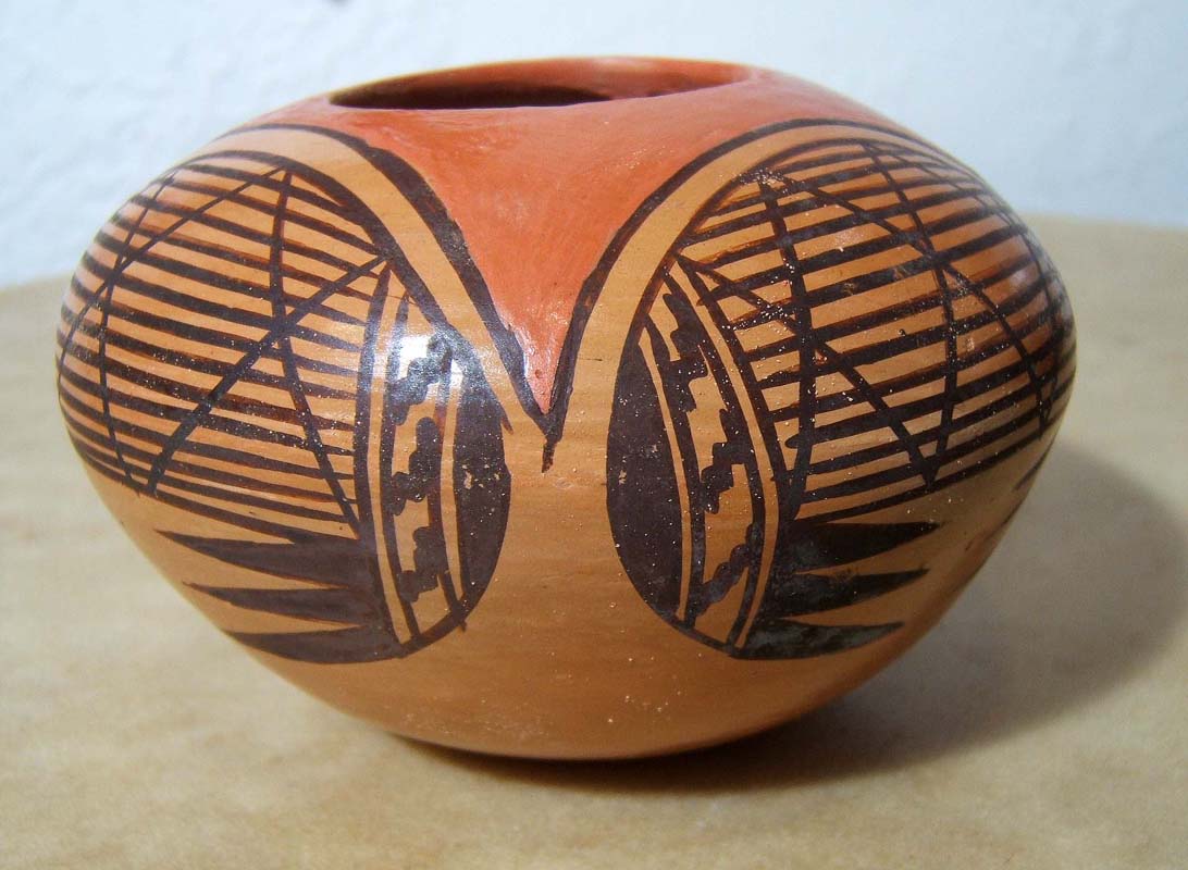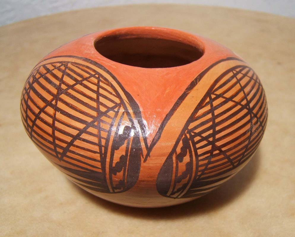 MEDIUM: HAND COILED CLAY WITH HANDPAINTED CLAY "SLIPS" / TRADITIONAL FINE LINE AND GEOMETRIC SIKYATKI PATTERNS