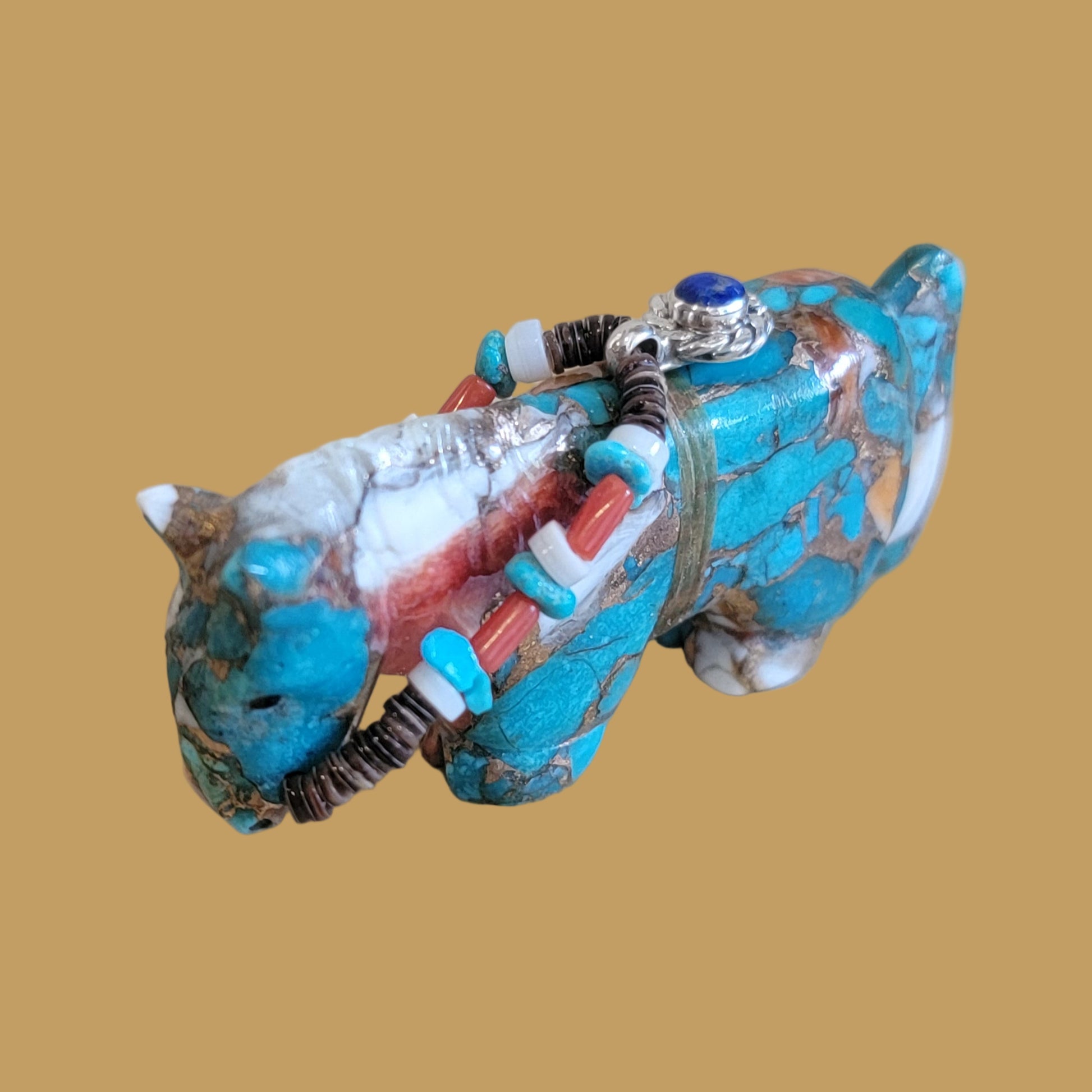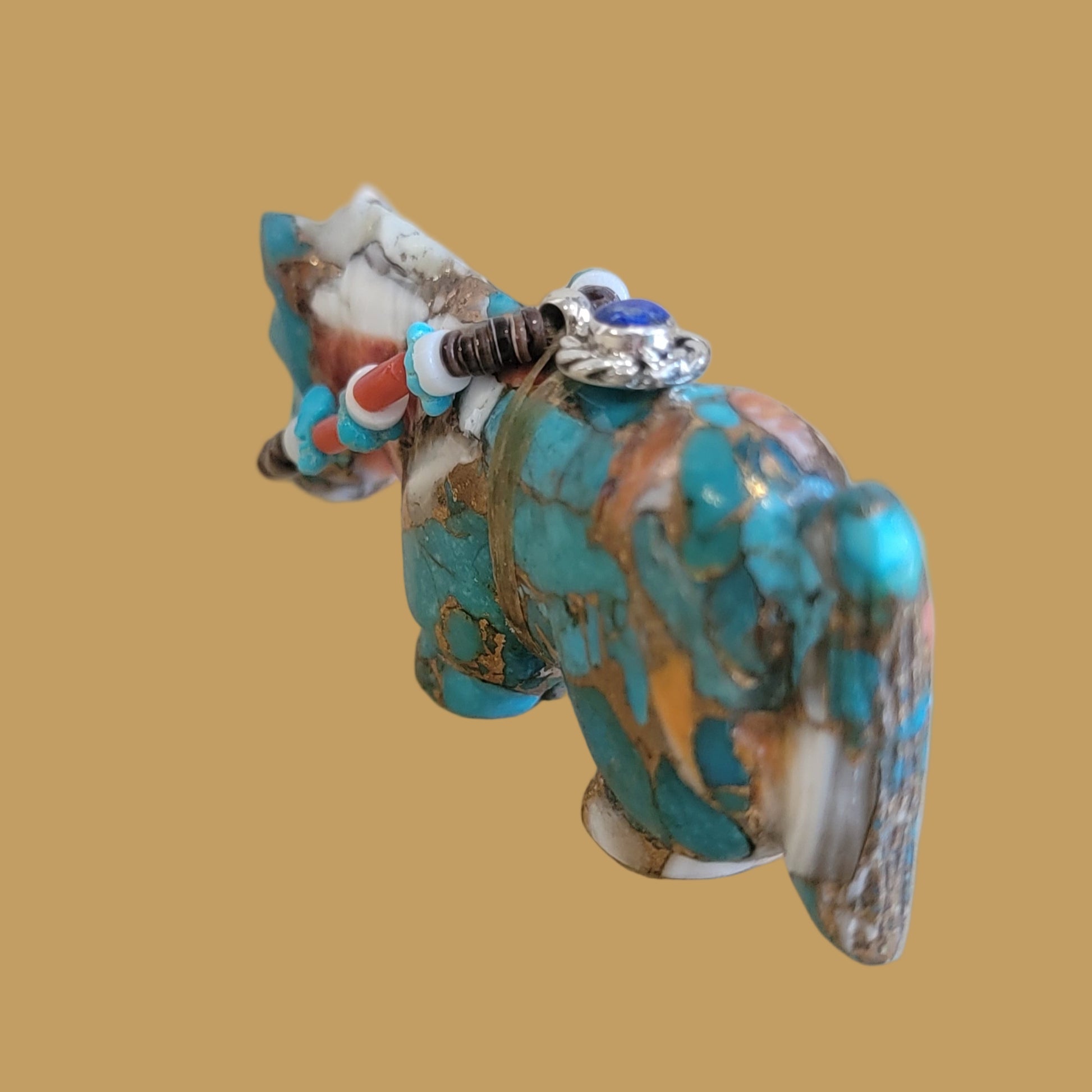 Colorful Composite Horse w/ Fancy Bridle and Sterling Jewelry Zuni Fetish