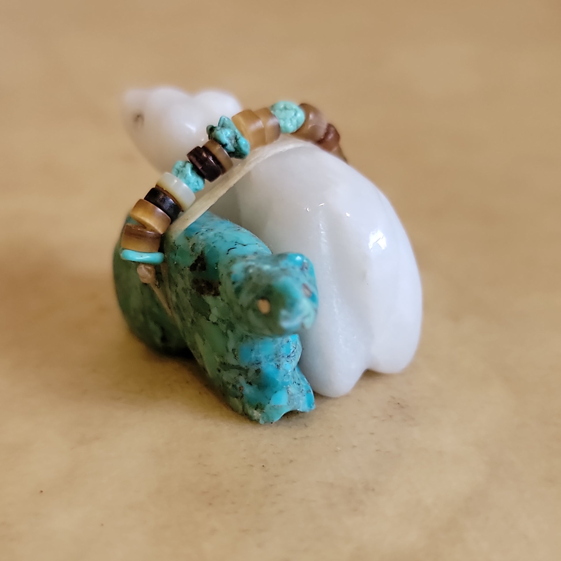 Medium: Alabaster and Turquoise bears/ Silver eyes on both bears/ shell heishe and turquoise wrap