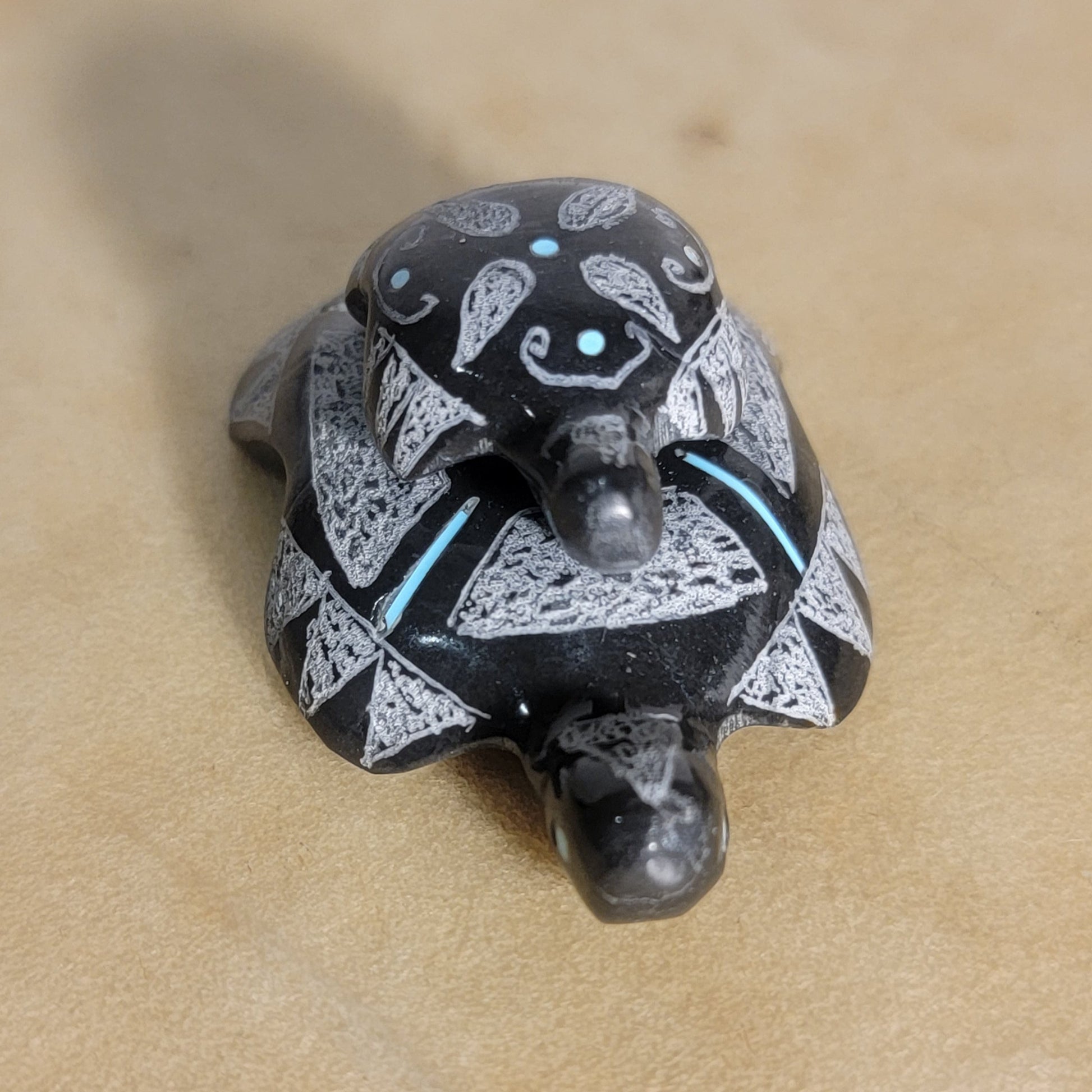 Double Stacked Highly Etched Marble Turtles Zuni Fetish
