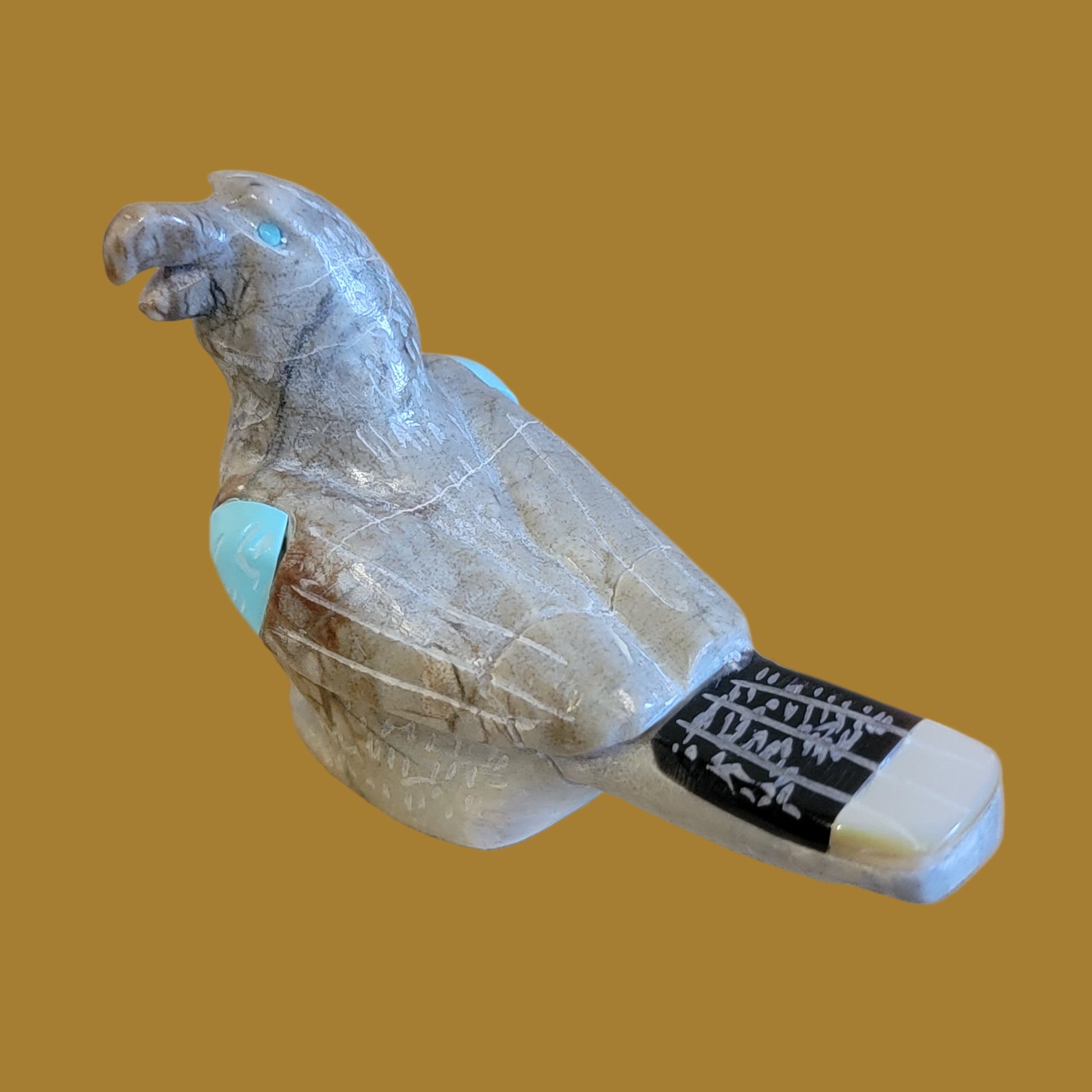 Fancy Inlaid Picasso Marble Eagle Zuni Fetish