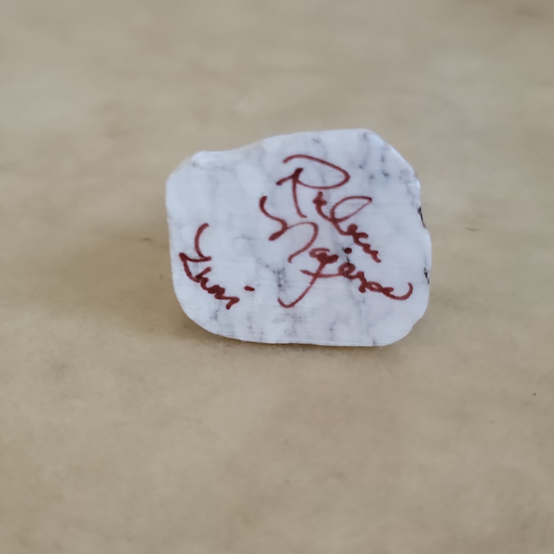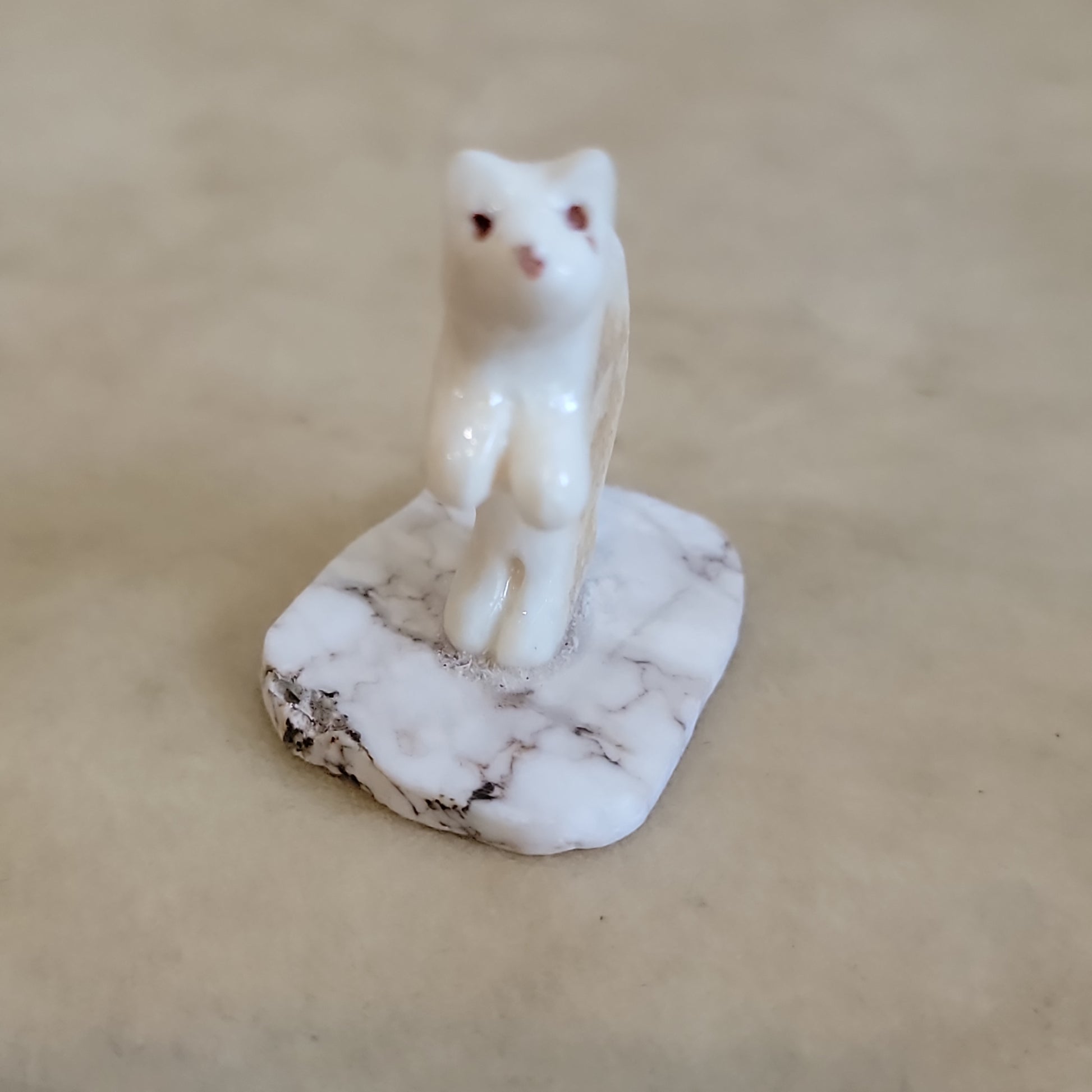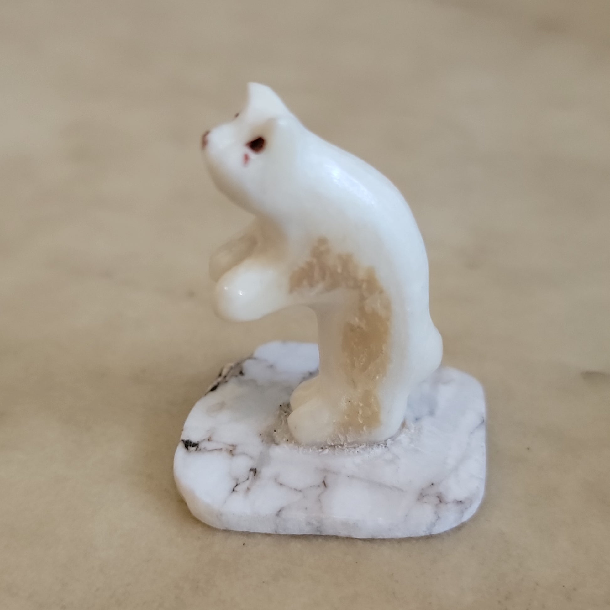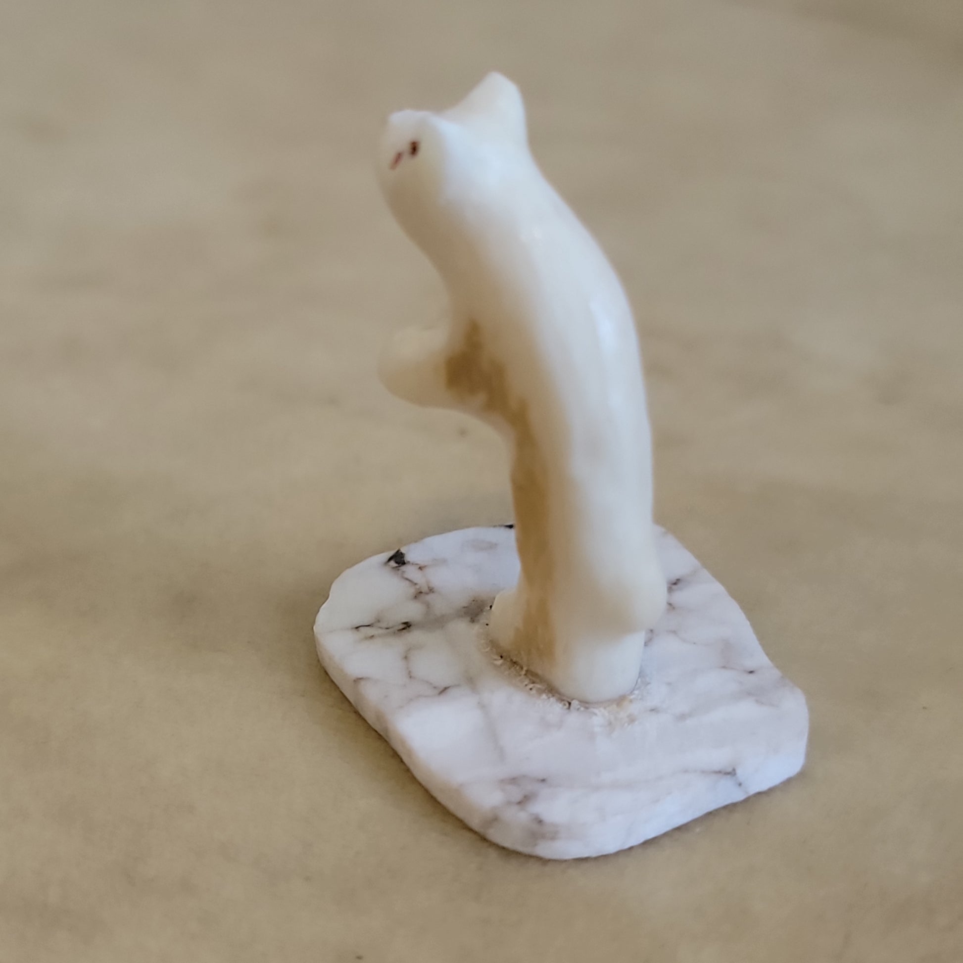 Medium Fossilized Ivory Bear with Pipestone eyes and nose/ Marble base