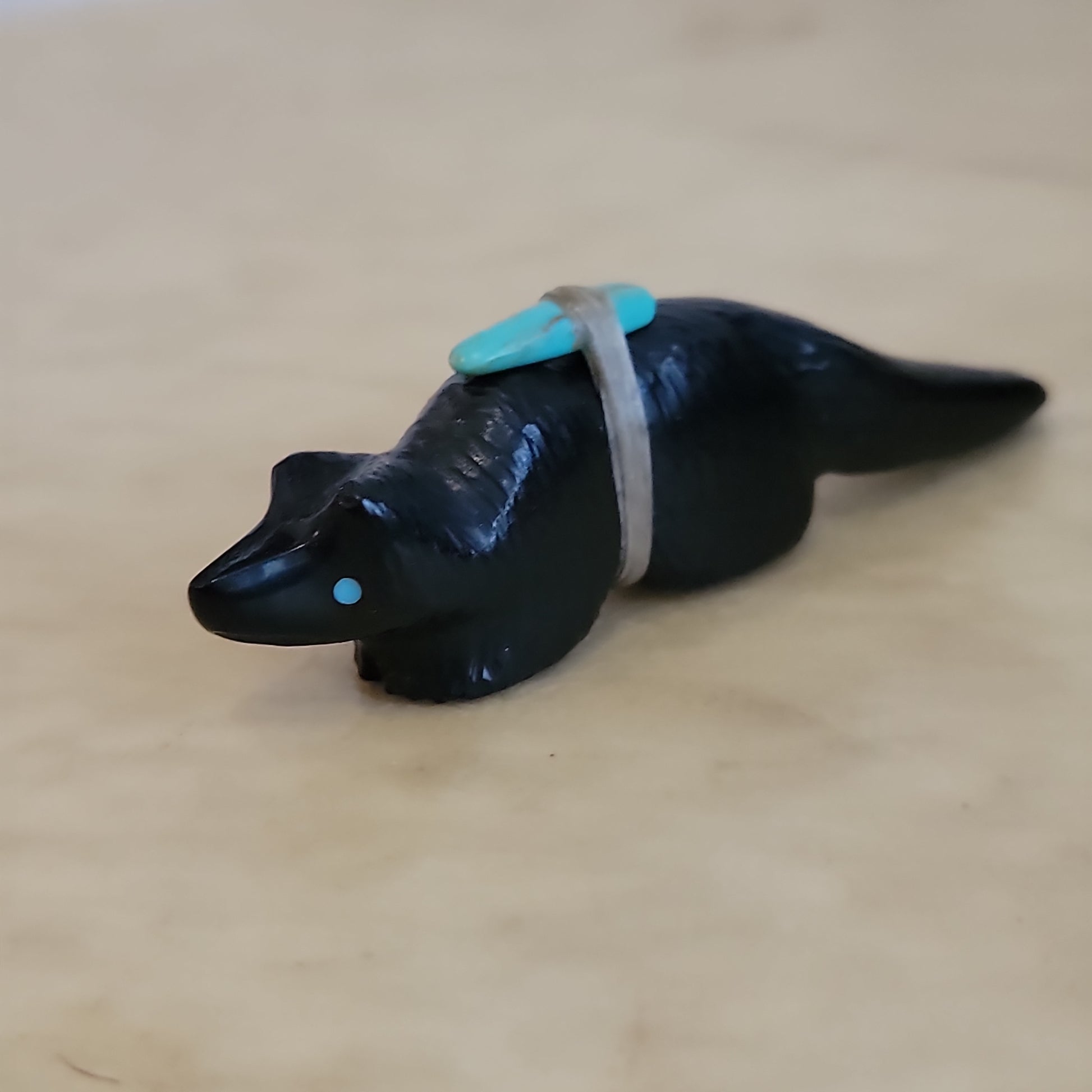 Medium: Etched and furry Black Jet with turquoise eyes and large turquoise slab "arrowhead" / Herb style!