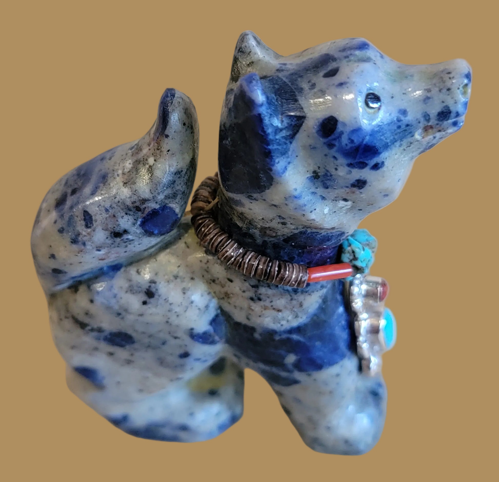 Howling Sodalite Coyote W/ Sterling Bear Necklace Zuni Fetish