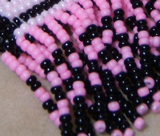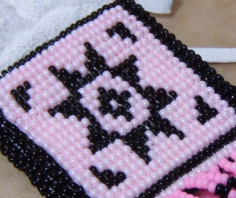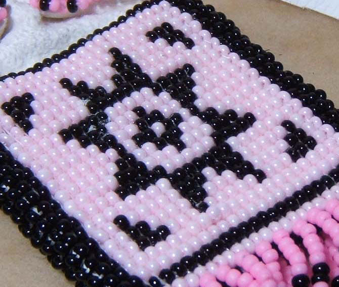 MATERIALS USED: WHITE UNSMOKED HIDE WITH SIZE 12 GLASS SEED BEADS