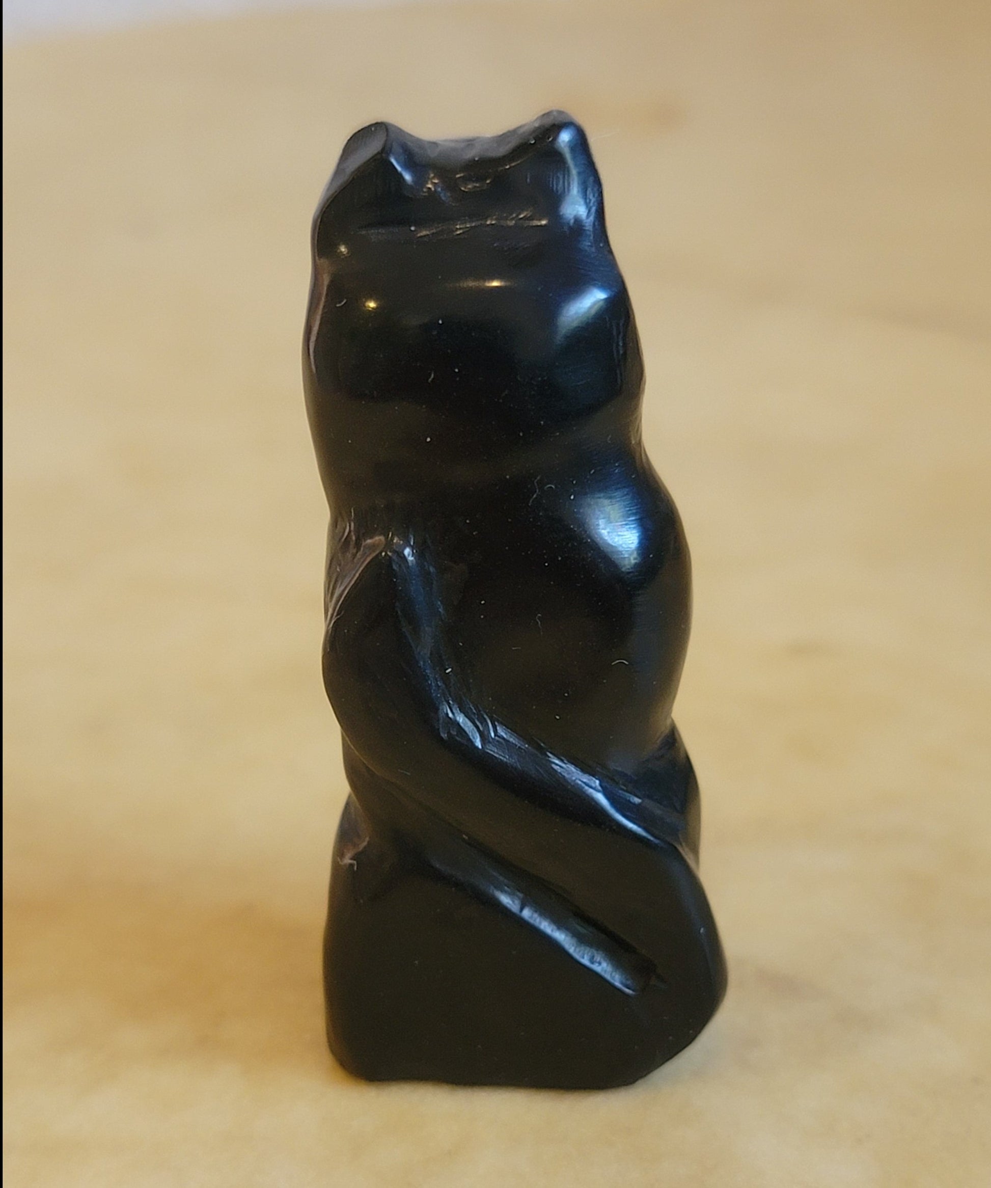 Medium: Highly polished Jet with turquoise eyes and collar with opal centerpiece