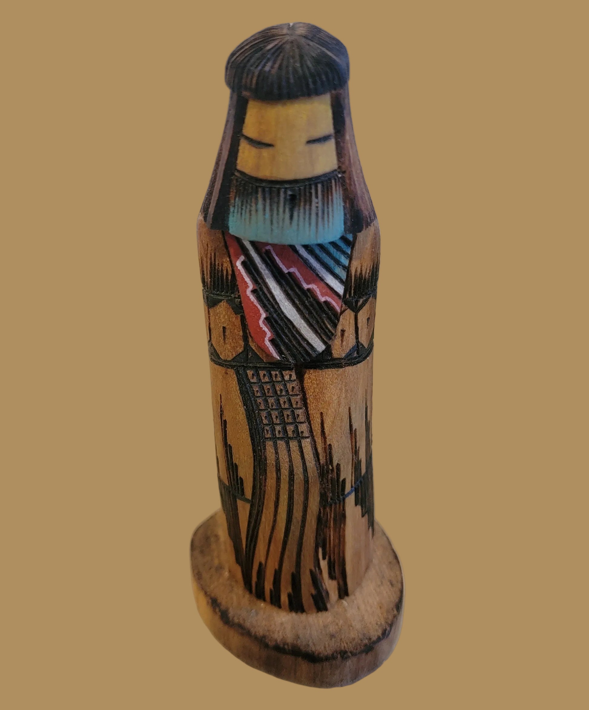 Long Haired Woodburned Navajo Butterfly Kachina