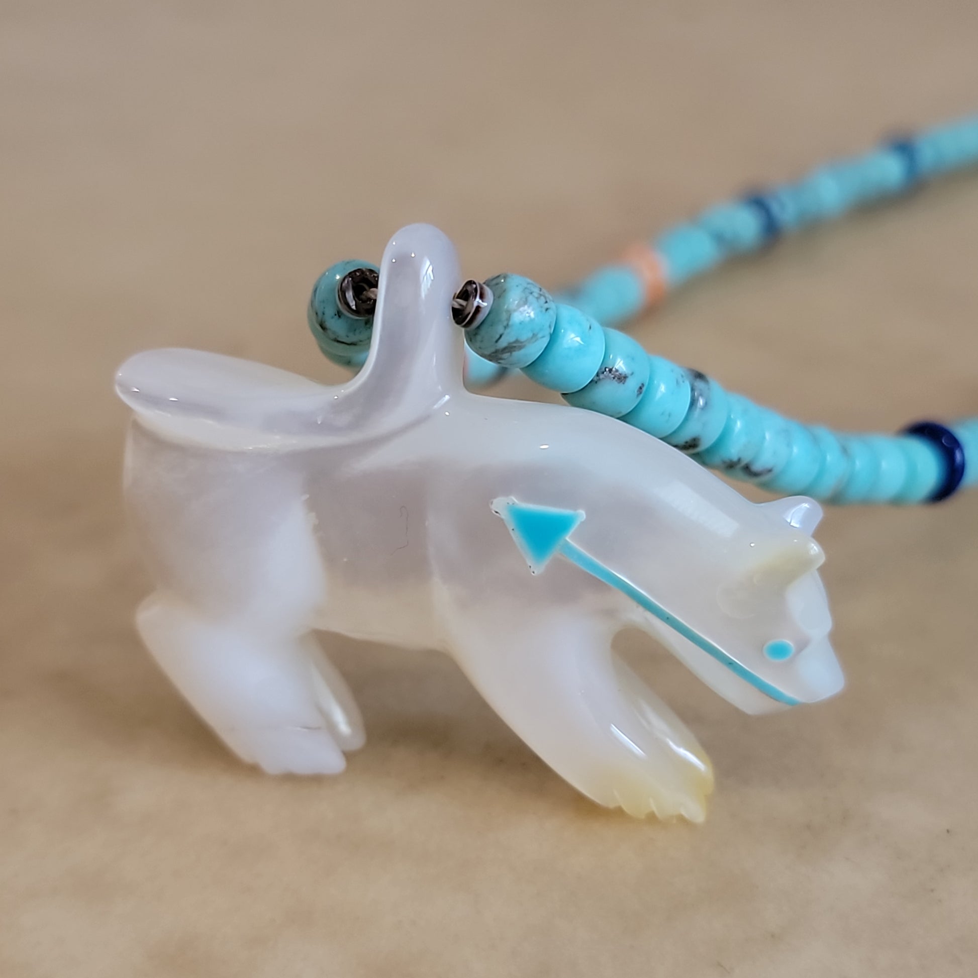 Mother of Pearl Zuni Fetish Mountain Lion Zuni Fetish Necklace