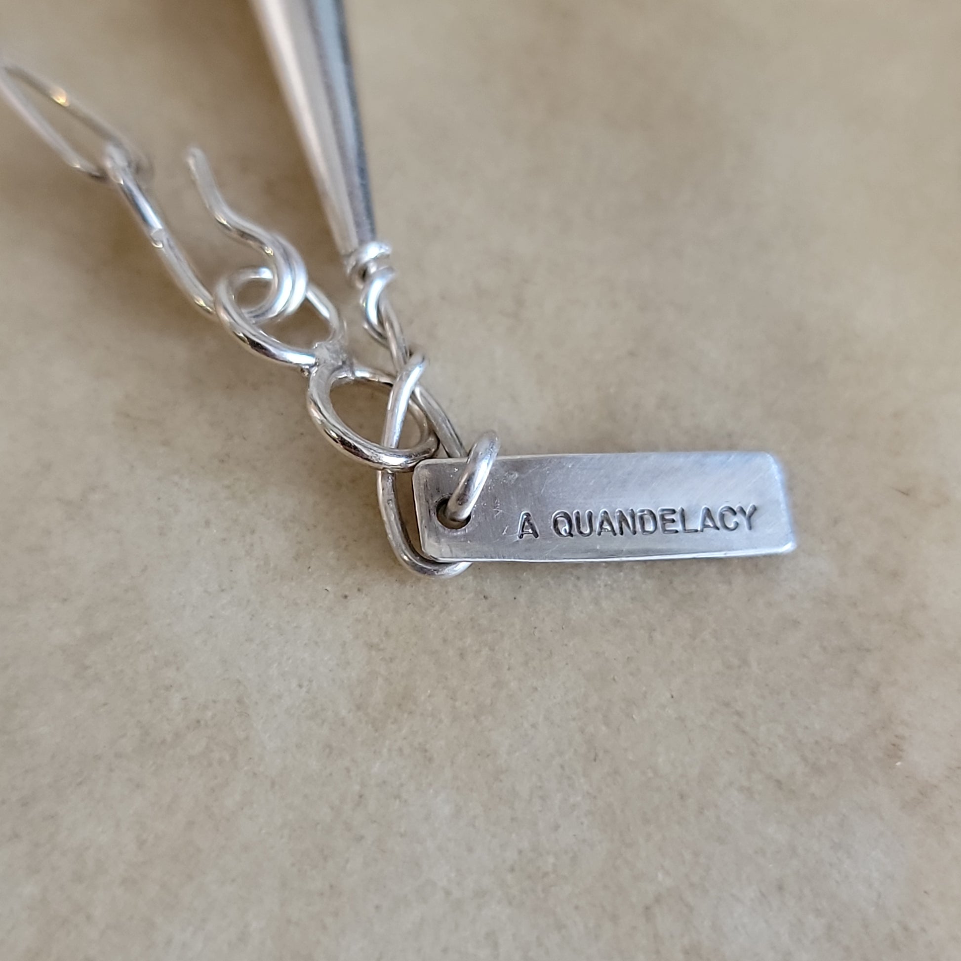 This a collector's Quandelacy carving and necklace! Andres has attached his silver hallmark "A. Quandelacy" to the silver clasp. The most unique feature of this wonderful necklace is the moutain lion tail curls up to form the attachment point for the necklace. Truly a one of a kind reversible very clean and collectible carving!