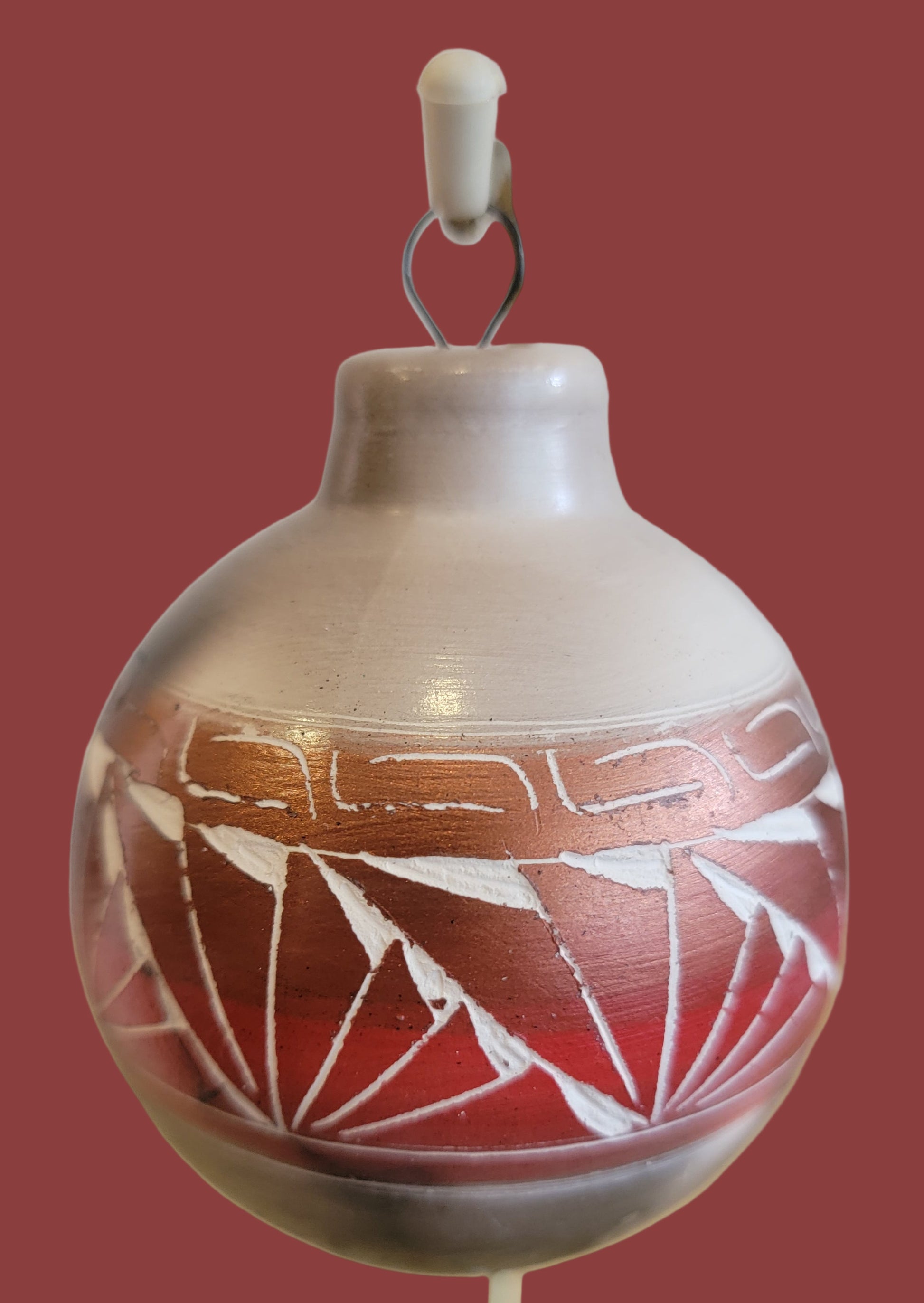 Navajo Horsehair Pottery Holiday Ornament w/ Copper Colored Etched Design