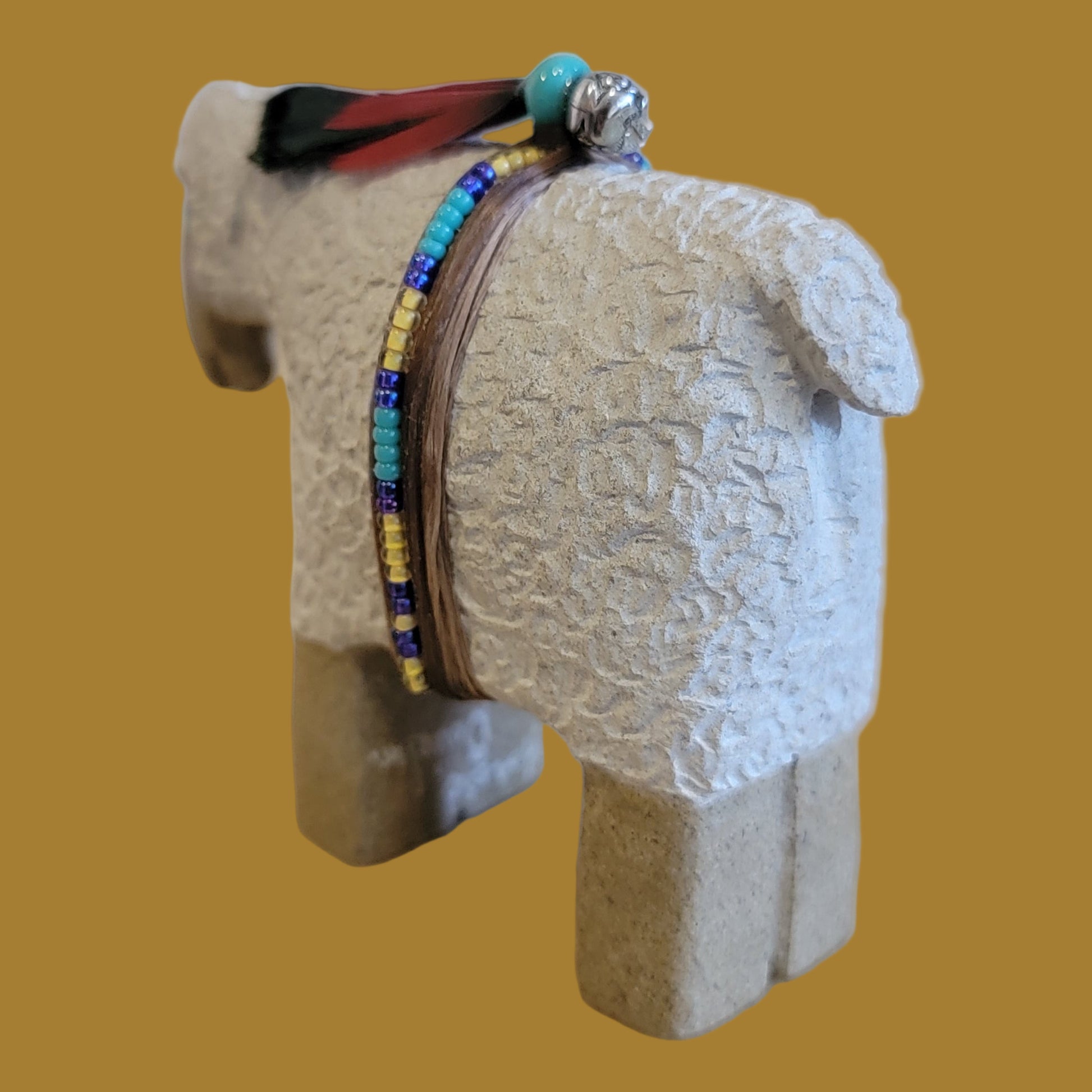 Navajo Sheep w/ Seedbead and Feather Wrap Zuni Fetish