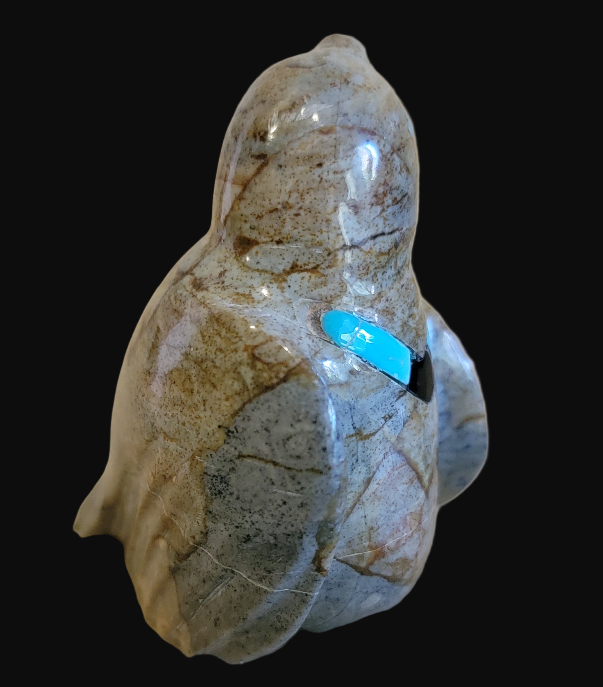 Picasso Marble Messenger Bird w/ Inlaid Necklace Zuni Fetish