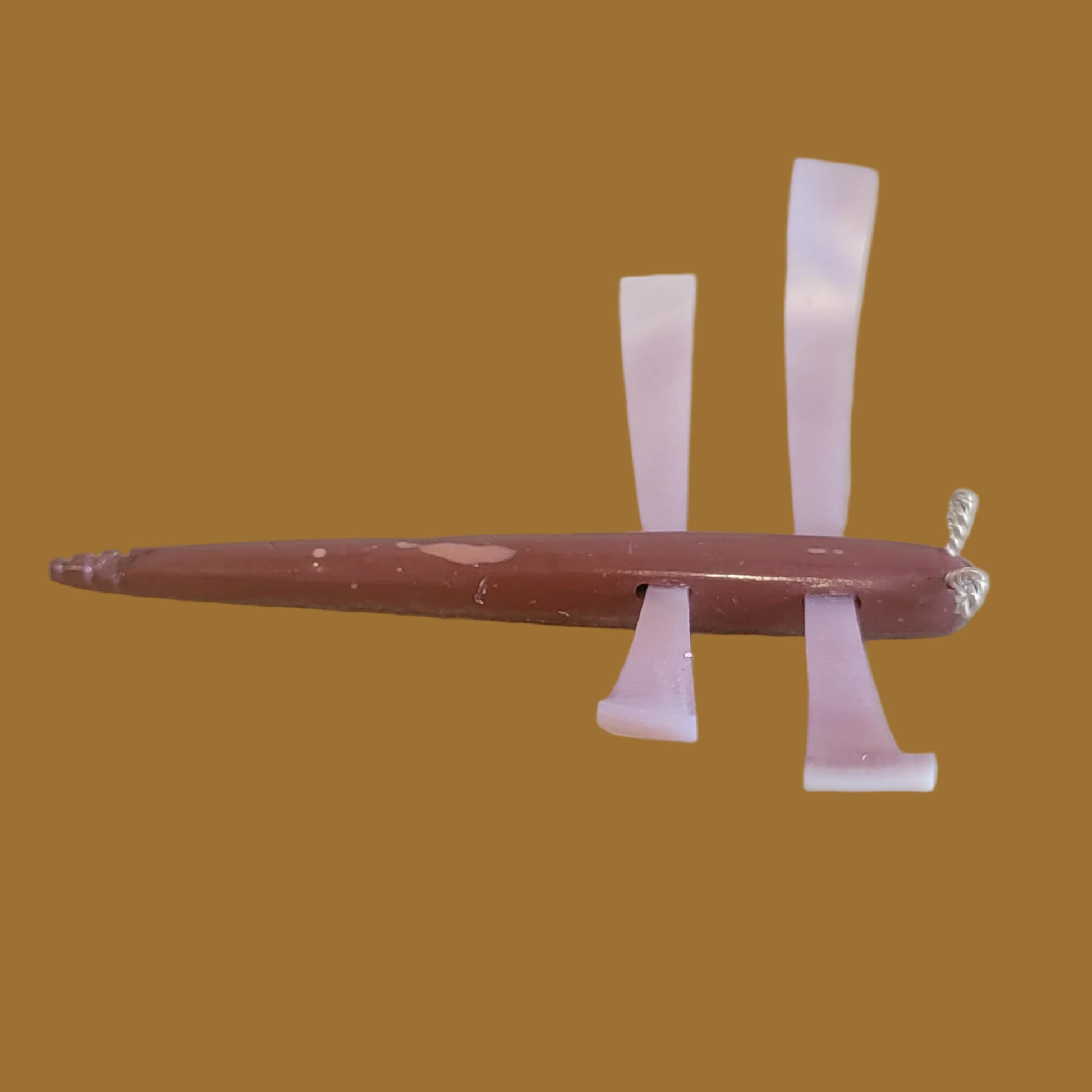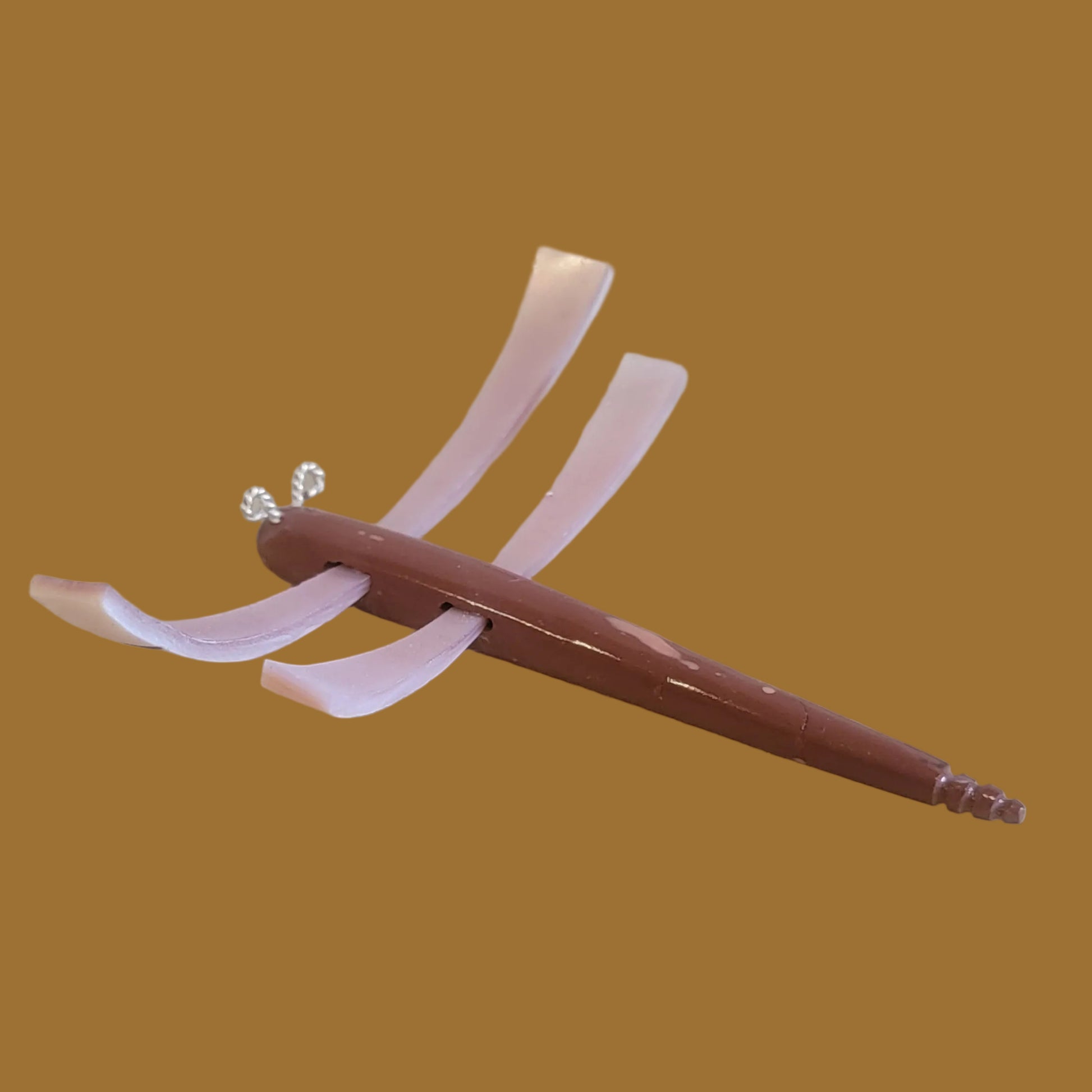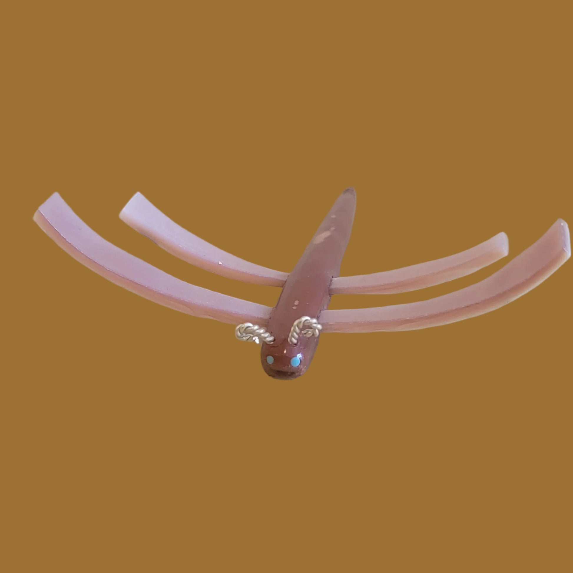 Medium: Pipestone body with turquoise eyes/ pink mussel shell wings/ sterling silver antennae