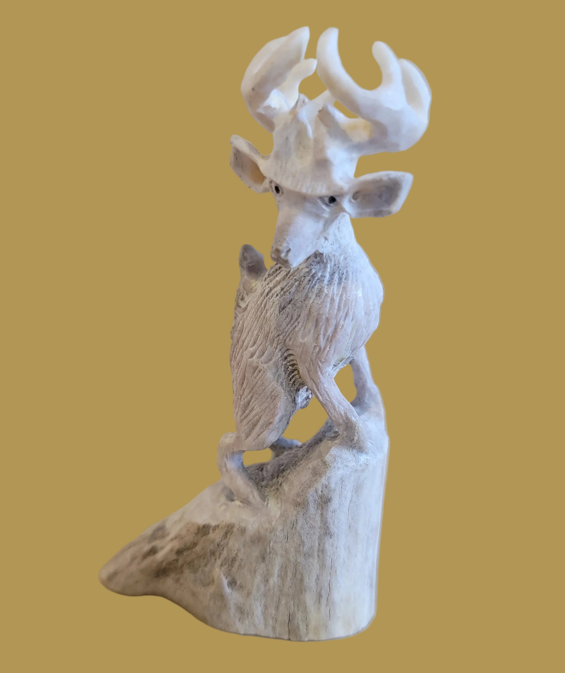 Extremely detailed Lewis carving. Buck with full rack has the power of gentleness!