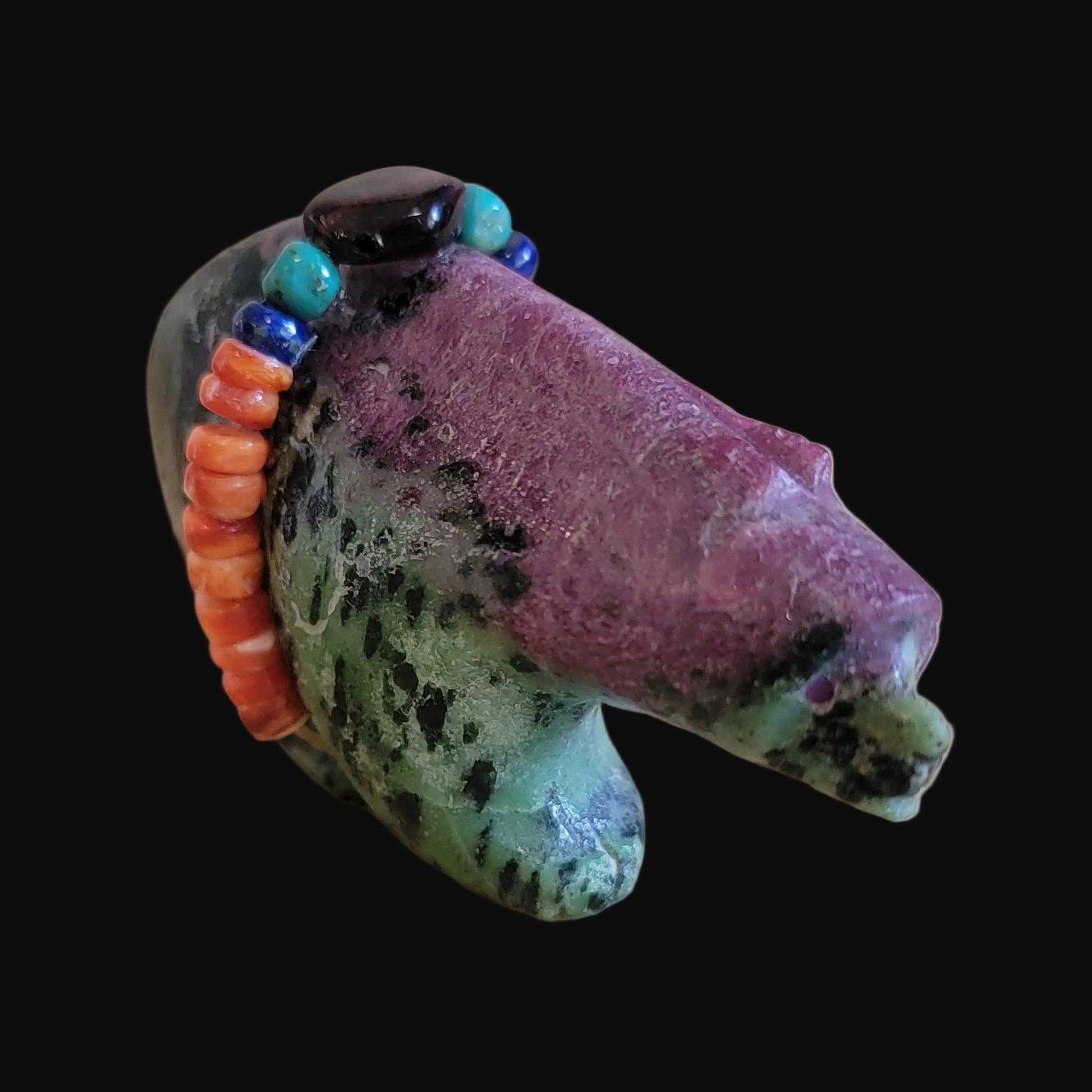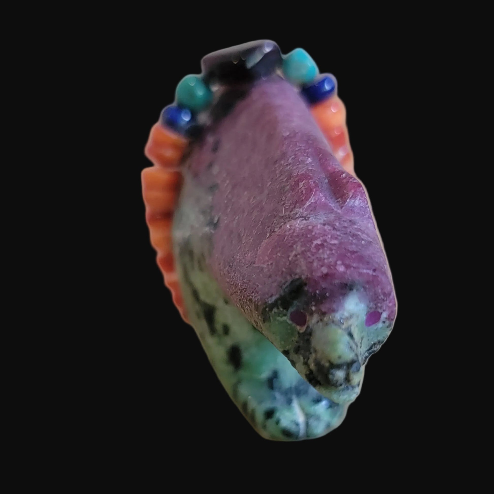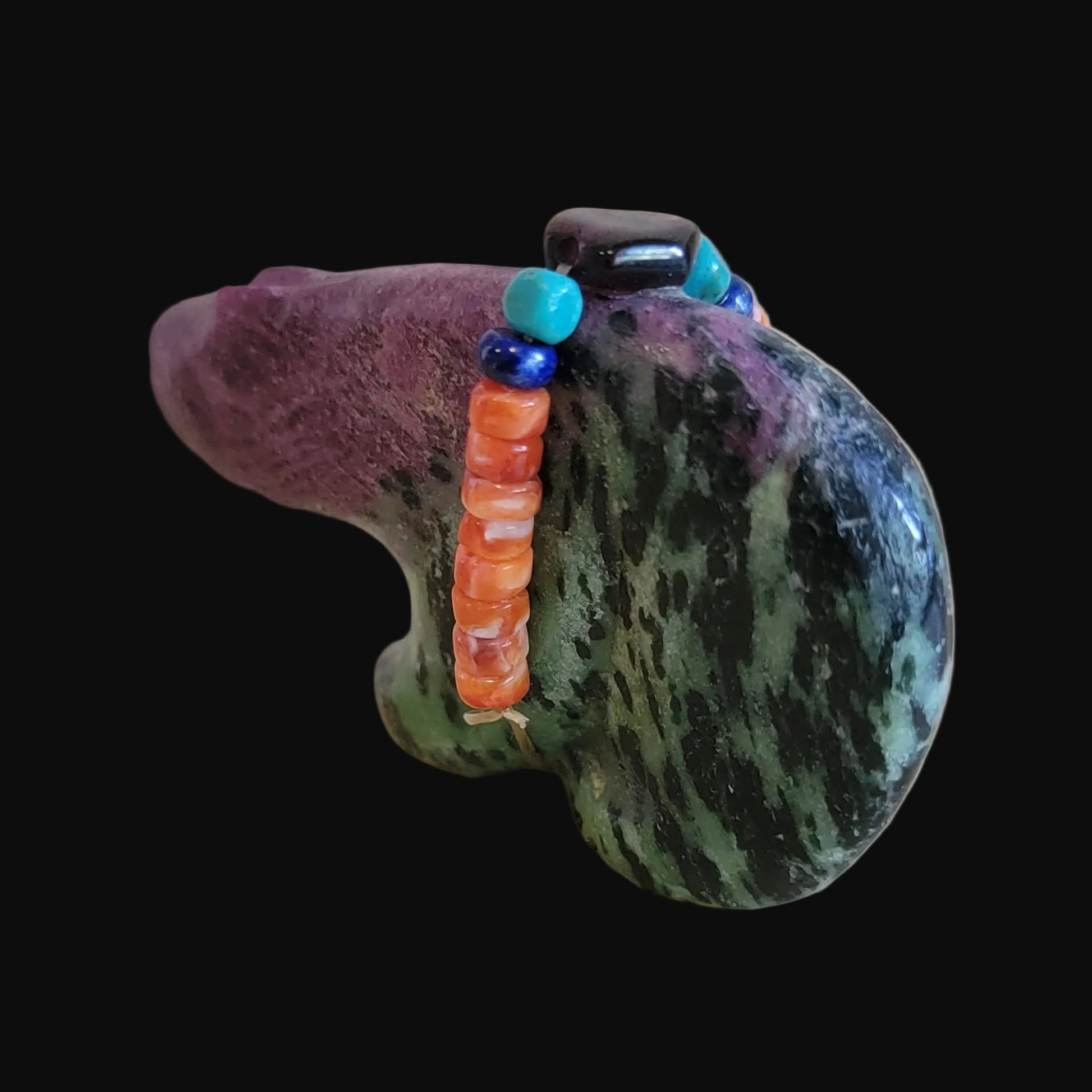Medium: Unique and beautiful Ruby in Zoesite stone with purple sugalite eyes/ colorful bundle with orange spiny oyster shell, lapis slabs, turquoise beads and large amethyst stone