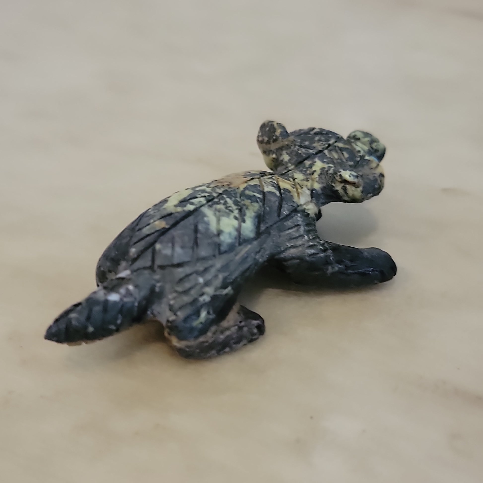 Medium: Etched and furry Soapstone with turquoise eyes